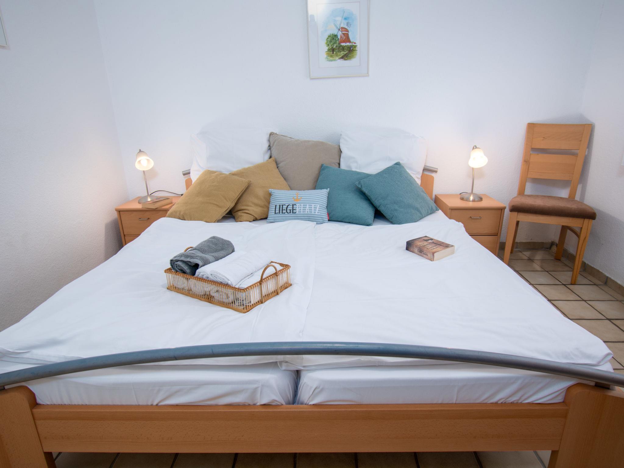 "Koralle", 2-room apartment 45 m2, on the ground floor. Cosy furnishings: living/dining room 20 m2 with 1 double sofabed (1 x 150 cm, length 190 cm), digital TV, flat screen and radio. Exit to the terrace. 1 room 10 m2 with 1 double bed (2 x 90 cm, length 200 cm). Kitchenette (oven, 4 ceramic glass hob hotplates, toaster, kettle, microwave, electric coffee machine). Shower/WC. Small terrace, small garden. Terrace furniture. Facilities: children's high chair (extra). Internet (WiFi, free). Please note: non-smokers only. Maximum 1 pet/ dog allowed. Smoke alarm.