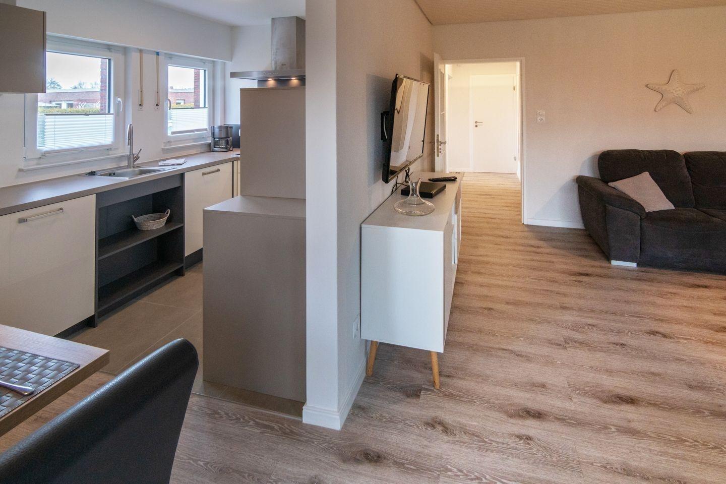 In dieser liebevoll gestalteten Ferienwohnung finden Gäste eine ideale Unterkunft für erholsame Tage. Die Wohnung bietet zwei komfortable Schlafzimmer, eines mit einem Doppelbett und eines mit zwei Einzelbetten, die optimalen Schlafkomfort versprechen. Die offene Küche ist mit modernen Geräten wie Geschirrspüler, Elektro-/Gasherd, Backofen, Mikrowelle, Kühlschrank und Gefriermöglichkeit ausgestattet. Ein Kinderhochstuhl sorgt für zusätzlichen Komfort für die kleinen Gäste.