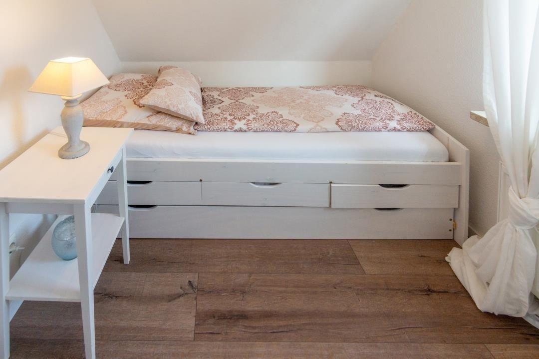 Eine besondere Option bietet die angrenzende kleine Ferienwohnung Westwind, die zusätzlich zum Ferienhaus genutzt werden kann und sich ideal für Großfamilien oder befreundete Reisegruppen eignet. Beide Einheiten lassen sich über eine abschließbare Verbindungstür miteinander verbinden, bleiben jedoch bei Bedarf vollständig getrennt – jeweils mit eigenem Eingang. So entsteht auf Wunsch eine erweiterte Unterkunft mit zusätzlicher Privatsphäre und viel Platz, ohne dass der Komfort verloren geht. Damit eignet sich das Objekt besonders für Gäste, die zusammen reisen möchten und dennoch eigene Rückzugsbereiche bevorzugen.