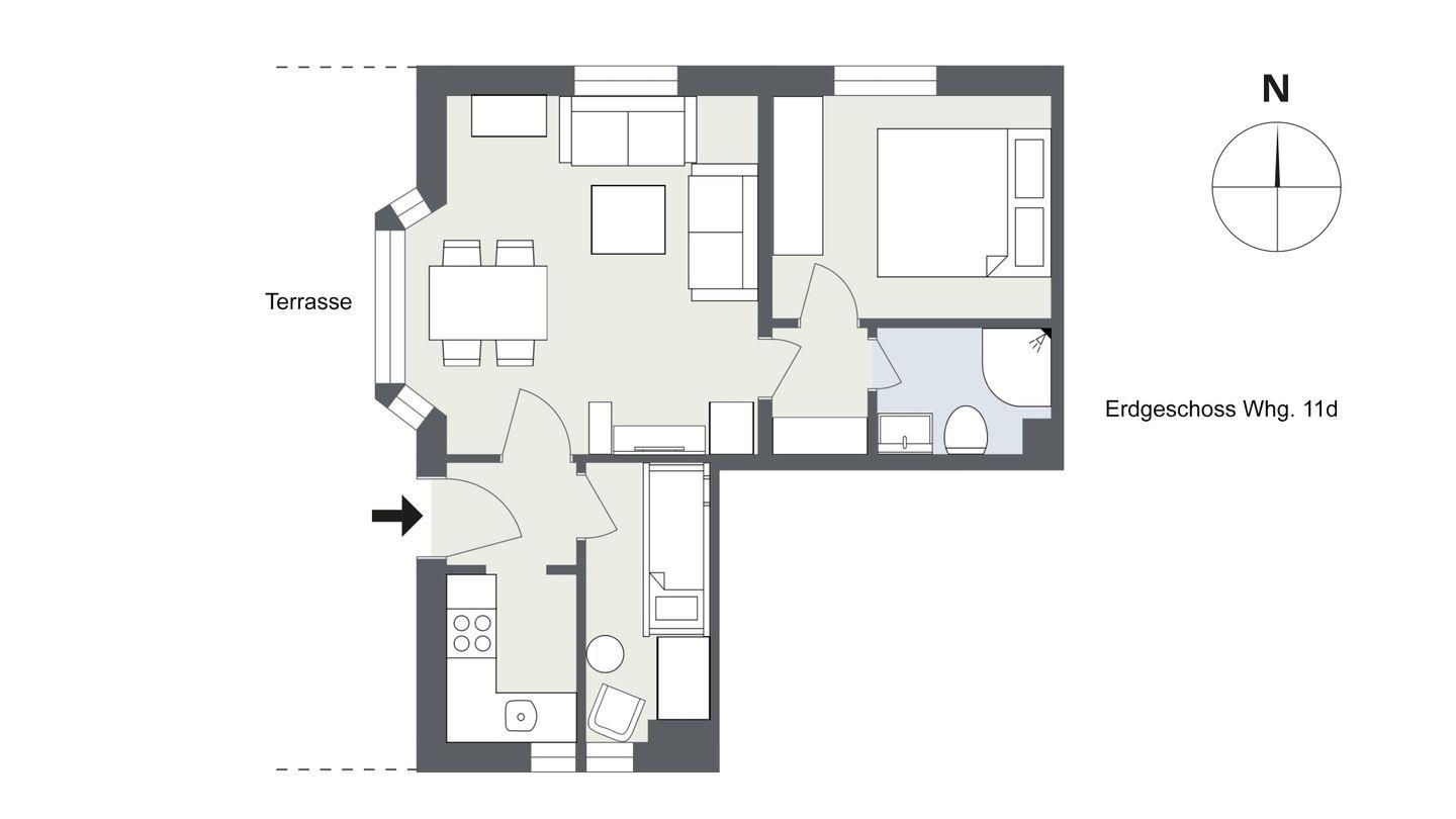 Erdgeschosswohnung für 4 Personen – ca. 52 qm mit Terrasse, Nichtraucher.