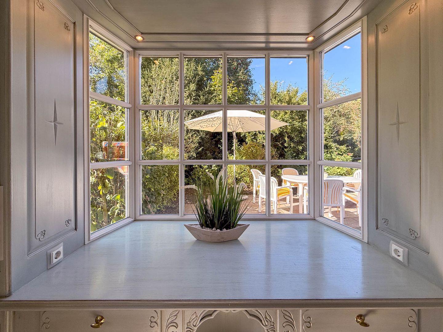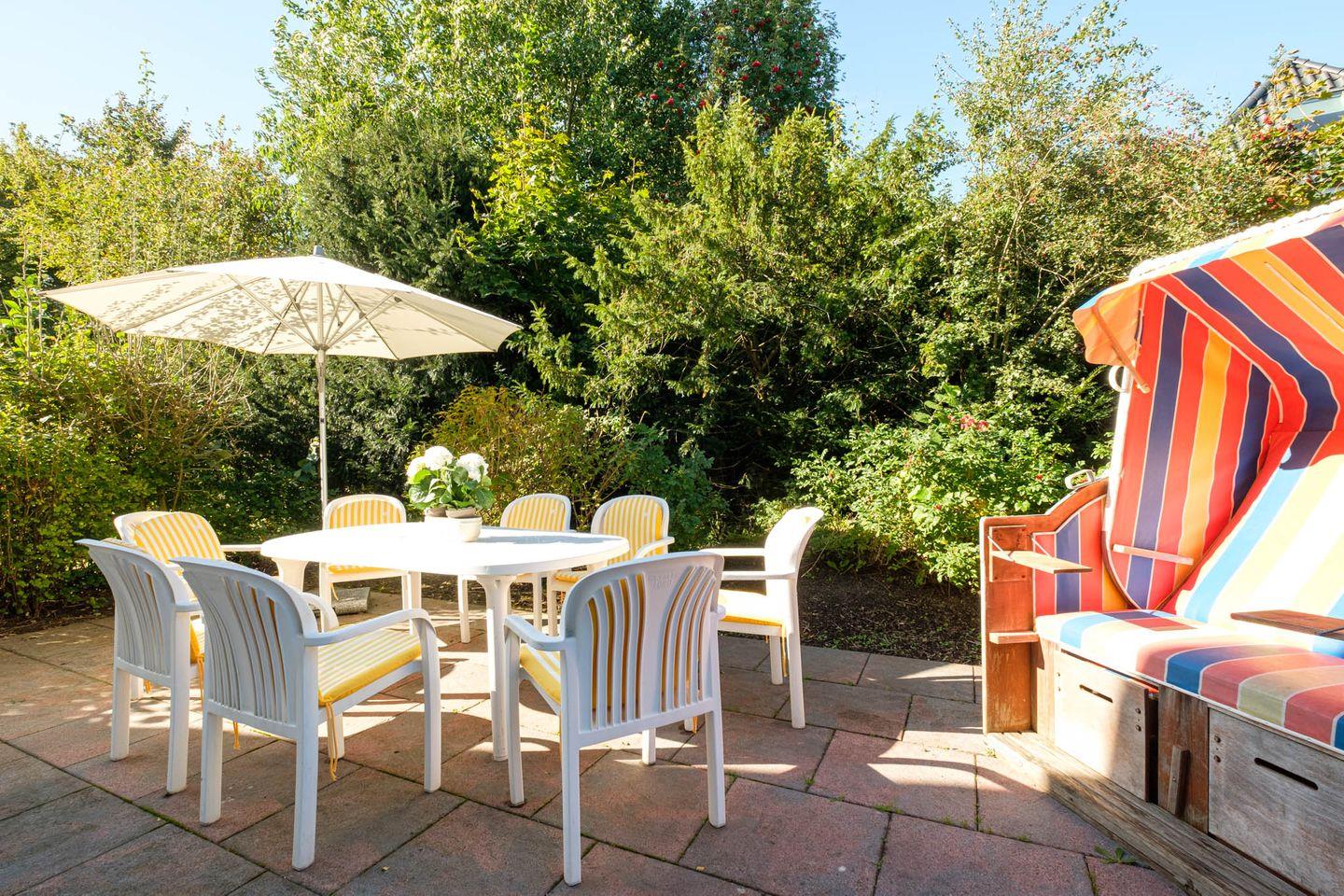 Von der Wohnung aus gelangen Sie direkt auf Ihre möblierte Terrasse, die zur ruhigen Gartenanlage gehört – perfekt zum Entspannen im Grünen.