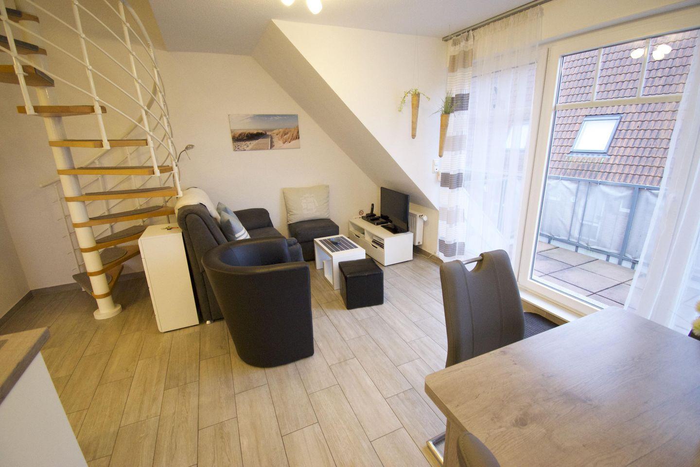 Hochwertig und liebevoll eingerichtete Ferienwohnung. Die Wohnung befindet sich im Obergeschoss und verfügt über einen Balkon in Südwestlage mit hochwertigen Gartenmöbeln.