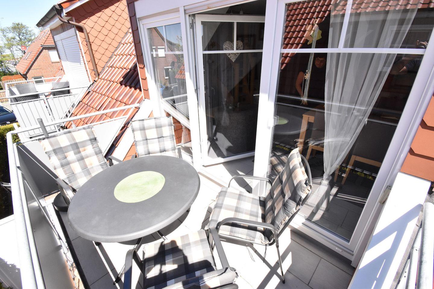 Die Ferienunterkunft „Meeresbrise OG“ in Norddeich bietet auf 64 m² Platz für bis zu vier Personen. Genießen Sie den offenen Wohnbereich mit voll ausgestatteter Küche, Sofa und Essbereich. Der Balkon mit Gartenmöbeln lädt zum Verweilen ein.