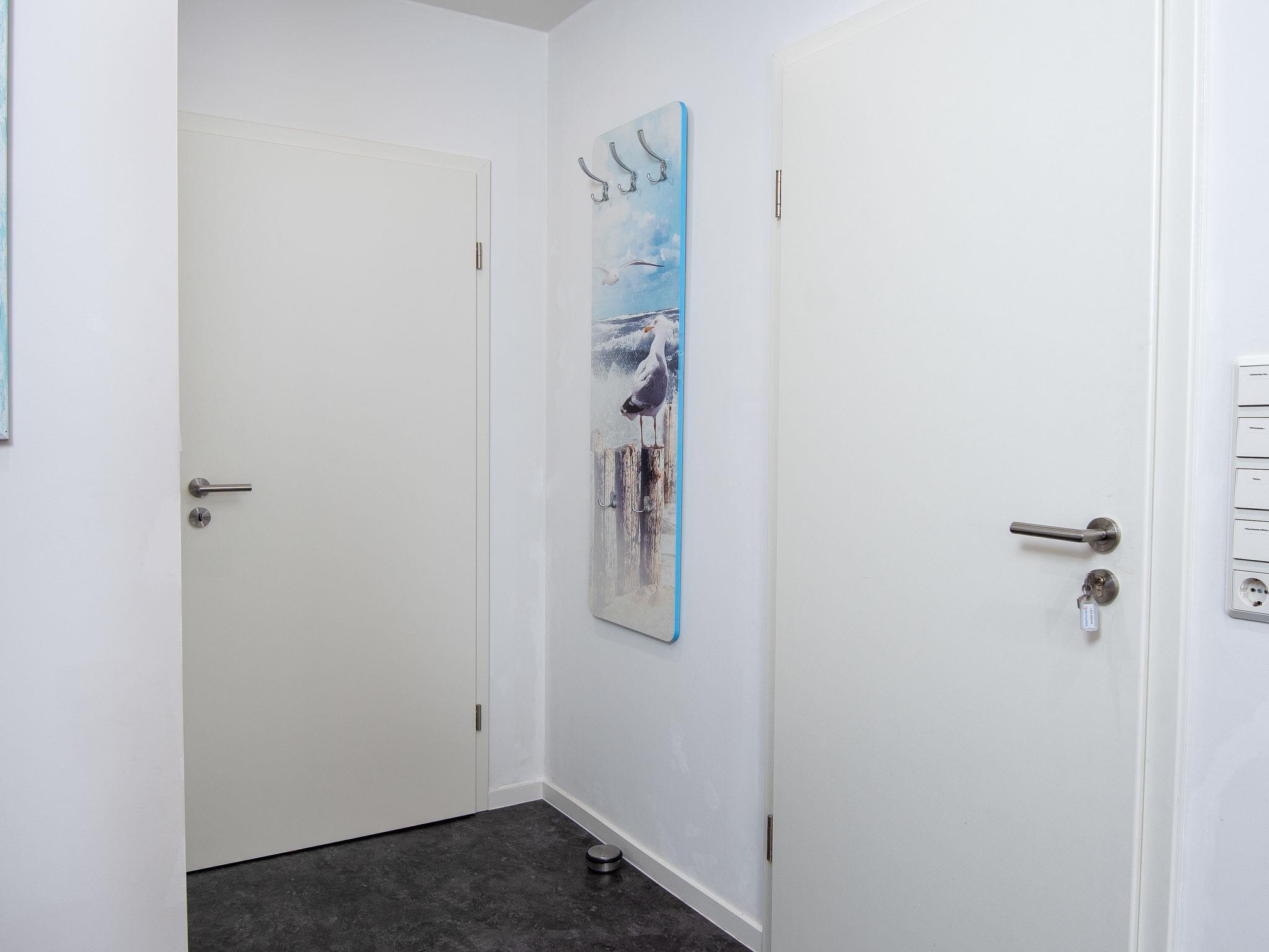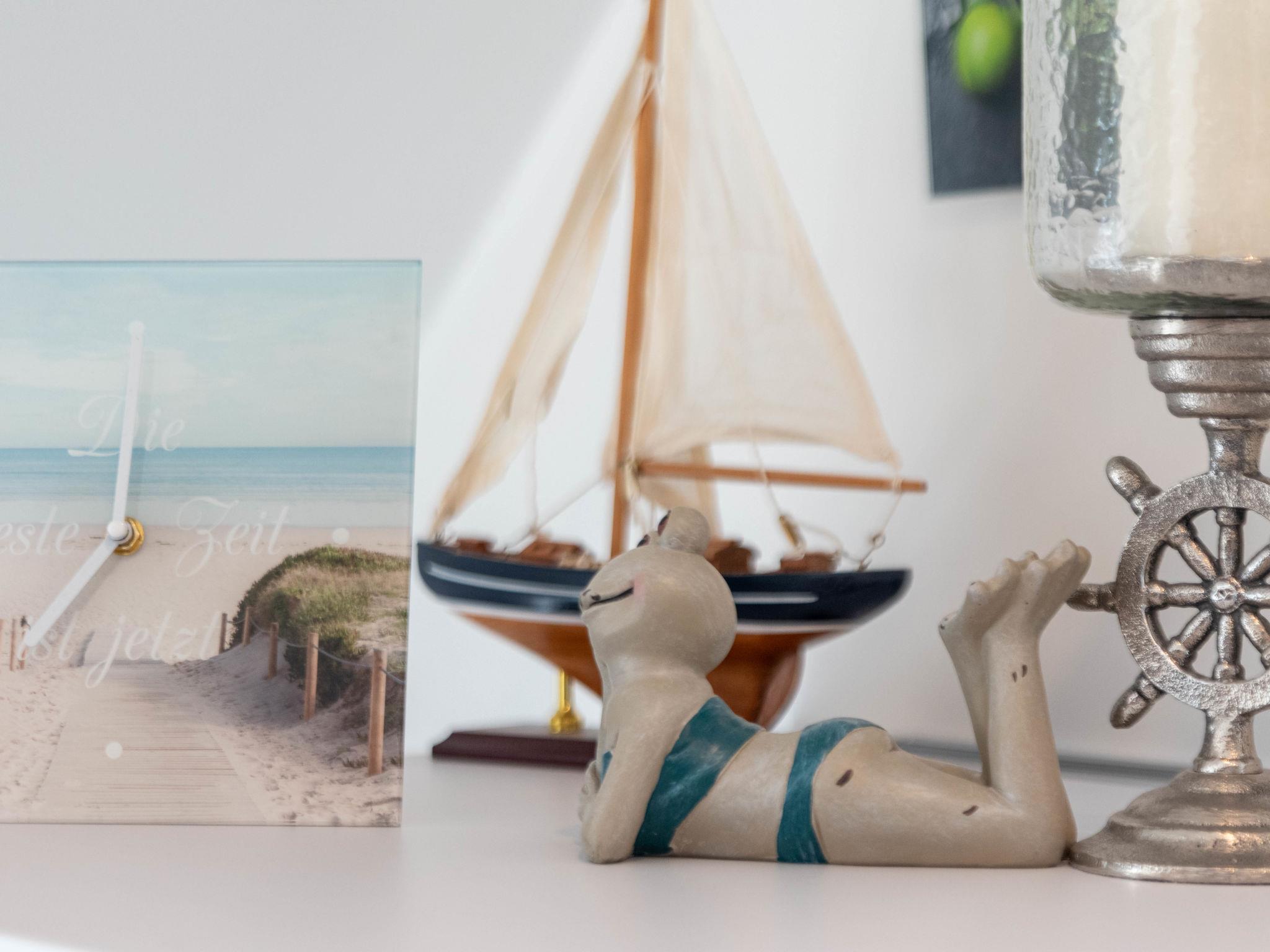 "Nordsee Brise", 3-room apartment 55 m2 on 2 levels, on the upper floor. Object suitable for 2 adults + 2 children. Tasteful and cosy furnishings: living/dining room with satellite TV (flat screen), radio, DVD and electric shutters. Exit to the balcony. 1 room with 1 double bed (2 x 90 cm, length 200 cm). Kitchenette (oven, dishwasher, 4 ceramic glass hob hotplates, toaster, kettle, microwave, electric coffee machine). Shower/WC. Underfloor heating. Top floor: 1 children's room with 2 beds (90 cm, length 190 cm). Shower/WC. Balcony furniture. Facilities: washing machine, children's high chair, baby cot. Internet (WiFi, free). Please note: non-smokers only. Smoke alarm.