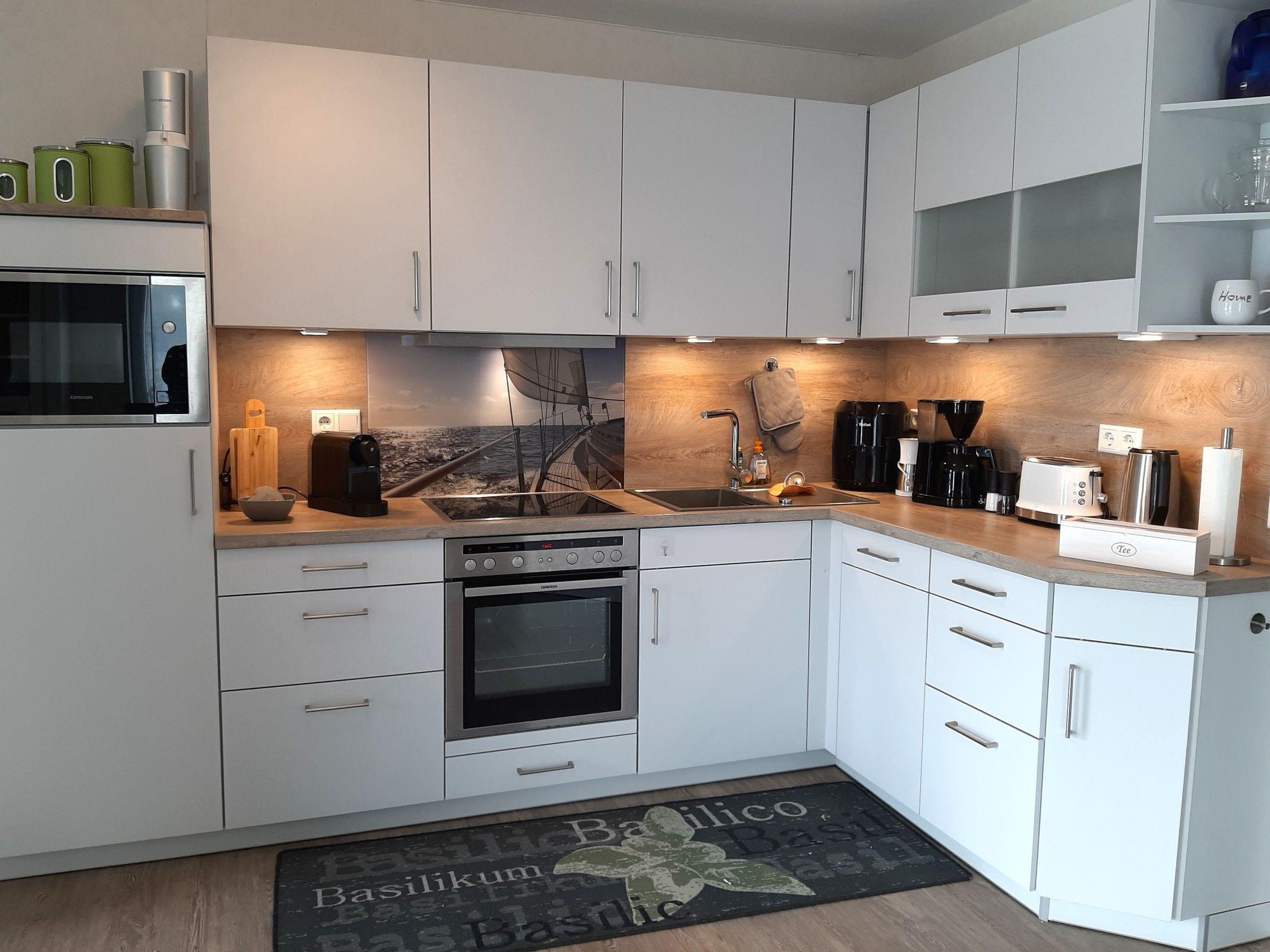 The interior of the flat is of the highest standard, with a DTV certification of 5 stars, which speaks for quality and comfort. At your disposal are amenities such as a washing machine, tumble dryer, a fully equipped kitchen with ceramic hob, both types of coffee machines and a kettle, and even a dishwasher to give you time for the essentials. A Smart TV provides entertainment, while the walk-in showers and underfloor heating provide additional comfort. Particularly noteworthy are the child-friendly features such as a high chair, cot, nappy bin, toilet seat and buggy.