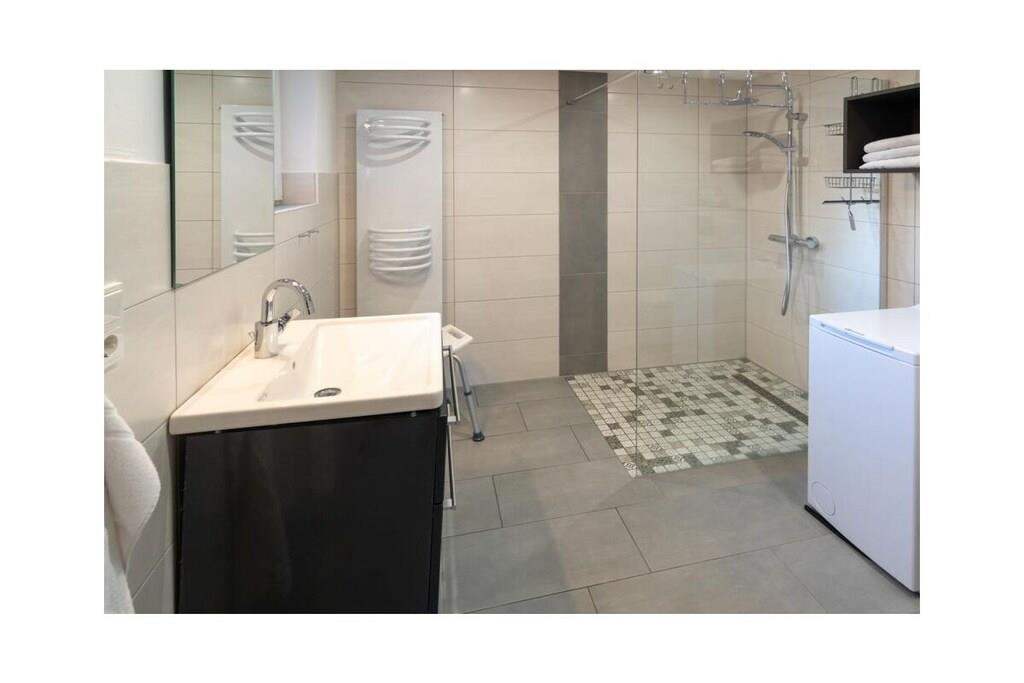 Holiday apartment Möwenblick Our Möwenblick is a ground floor apartment away from the hustle and bustle of the north. The apartment is centrally located, so you can do your shopping, stroll around town and everything else that is fun right from the front door and leave your car in front of the garage. This is used for bikes you bring with you and storage space for strollers or other children's vehicles. The Möwenblick itself has a master bedroom with a double bed, wardrobe and TV. In the living room there is a large corner couch that can also be pulled out as a sofa bed with a wall unit and a large flat screen. Here you can end the evening comfortably. In the well-equipped kitchen with seating, you can enjoy the prepared meals together or start a games evening. From here you can access the second bedroom with a bunk bed and another wardrobe. This bedroom is a walk-through room that ends in the shower room with rain shower, toilet, sink and washing machine. In front of the house there is a small fenced garden with a terrace that is only available to you. Garden furniture is also available. For a carefree start to your vacation, book our linen package. This consists of bed linen, towels, shower mats, tea towels and a service set (toilet paper, dishwasher tablets, garbage bags, dish brush, cleaning cloths and other small helpers) for a carefree start to your vacation.
