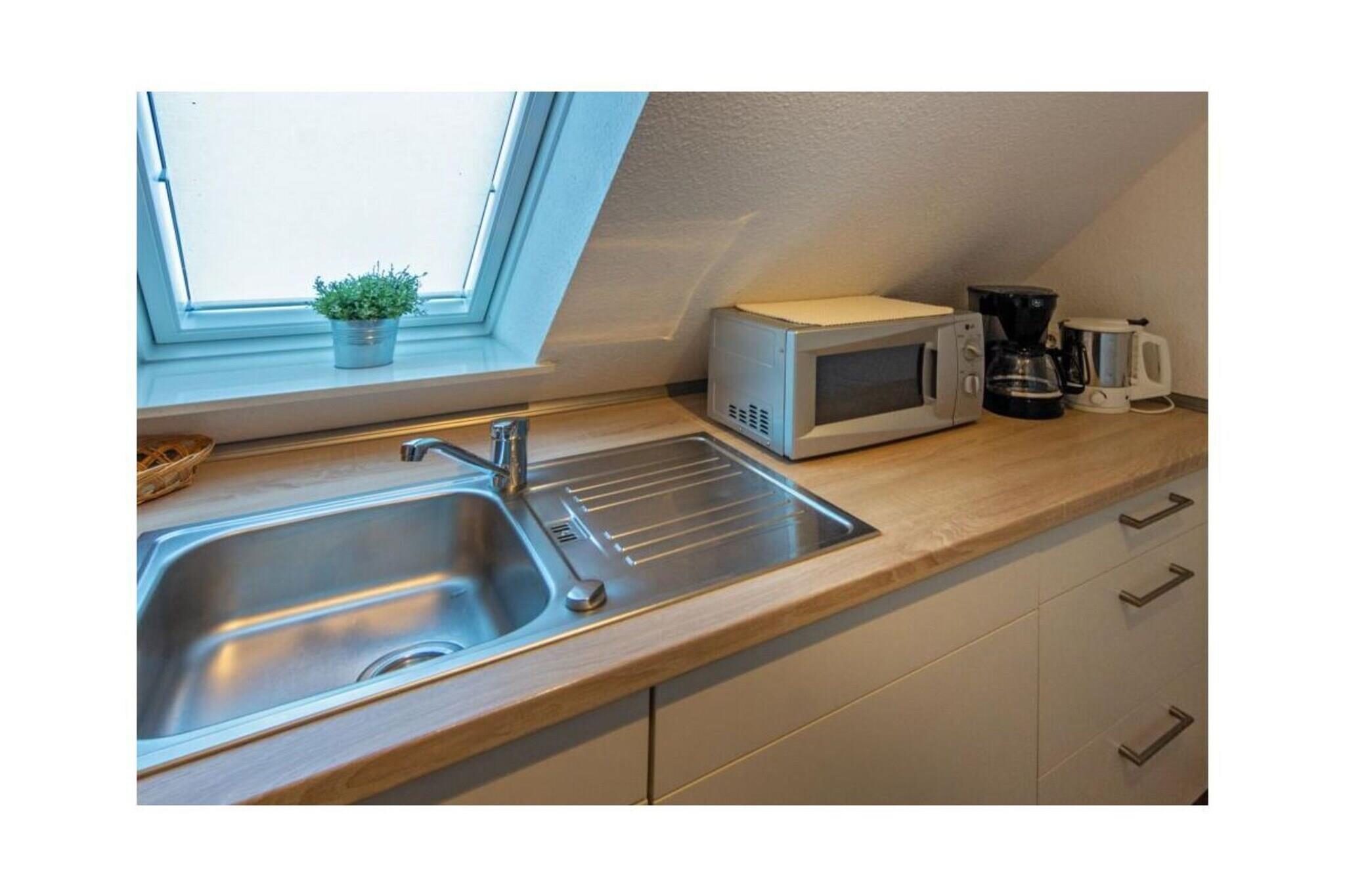 Holiday Apartment Seestern Schonerweg 1 The modern 35-square-meter "Seestern" apartment in Norden-Norddeich offers ideal accommodation for a relaxing holiday on the North Sea coast. The apartment is comfortably furnished and features numerous amenities. It is located by the sea, providing a refreshing breeze. The beach is within walking distance and invites you to take long walks and spend relaxing hours by the water. Here you can enjoy the peace and quiet and listen to the sound of the waves. The living area features a comfortable sofa with two armchairs and a dining table. Internet, Wi-Fi, a TV, a radio, a DVD player, books, and games are available for your entertainment. The separate kitchen is equipped with a ceramic hob, oven, freezer, refrigerator, espresso machine, microwave, coffee maker, kettle, blender, toaster, egg cooker, as well as dishes, cutlery, and spices. The bathroom has a shower, toilet, hairdryer, sink, vanity mirror, mirror, and a window. The storage room includes an iron and ironing board, a clothes rack, a fire alarm, a vacuum cleaner, and a first-aid kit. A wardrobe with a shoe rack and a full-length mirror is also available. The bedroom has two single beds with high-quality, comfortable mattresses, as well as two bedside tables and a wardrobe. A lockable shed, shared by two apartments, offers a charging station for e-bikes and bicycle storage. The apartment also includes a lockable shed, shared by two apartments. It offers a charging station for e-bikes and bicycle storage. Experience unforgettable days on the North Sea and be enchanted by the unique atmosphere. The "Seestern" holiday apartment offers everything you need for a comfortable and relaxing vacation. For a worry-free start to your vacation, book our linen package. This includes bed linen, towels, bath mats, tea towels, and a service set (toilet paper, trash bags, dish brush, cleaning cloths, and other small helpers) for a carefree start to your vacation.