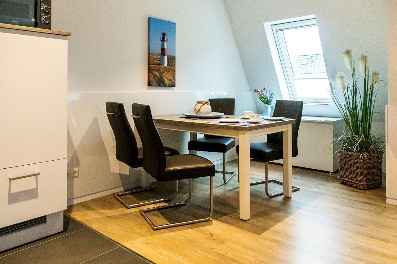 Die erst Anfang 2017 fertiggestellte Wohnung bietet bis zu vier Gästen (und einem Kleinkind) eine moderne, gemütliche Wohnatmosphäre, die zum Entspannen einlädt. Eine hervorragende Lage mitten im Herzen von Norddeich macht die Wohnung zudem attraktiv.