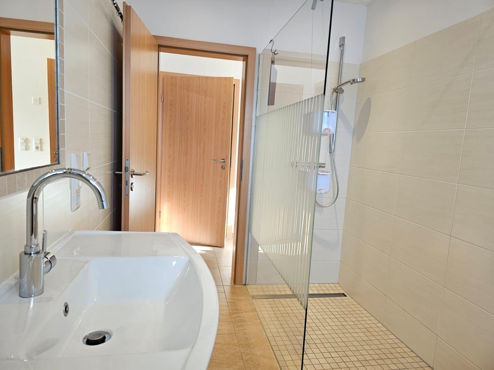 Die Ferienwohnung bietet einen einladenden Rückzugsort, ideal für Familien oder Gruppen. Mit zwei Schlafzimmern, ausgestattet mit einem Doppelbett und zwei Einzelbetten, findet jeder den perfekten Schlafplatz. Die offene Küche ist modern gestaltet und verfügt über einen Elektro-/Gasherd, Geschirrspüler, Backofen, Mikrowelle, Kühlschrank sowie eine Kaffeemaschine und einen Toaster. Für das Wohl der Gäste sorgt die allergikerfreundliche Ausstattung und ein Badezimmer mit Fenster, bodengleicher Dusche sowie einem umfangreichen Starterset. Die helle, freundliche Wohnlandschaft mit Sofa, Sessel und Esstisch lädt zum Verweilen ein. WLAN steht kostenfrei zur Verfügung, und ein Parkplatz ist direkt vor der Tür. Zusätzliche Annehmlichkeiten wie ein Haartrockner, TV, Bügeleisen und Reinigungsmittel runden das Angebot ab. Diese Ferienwohnung ist ein perfekter Ort für entspannte Urlaubstage.