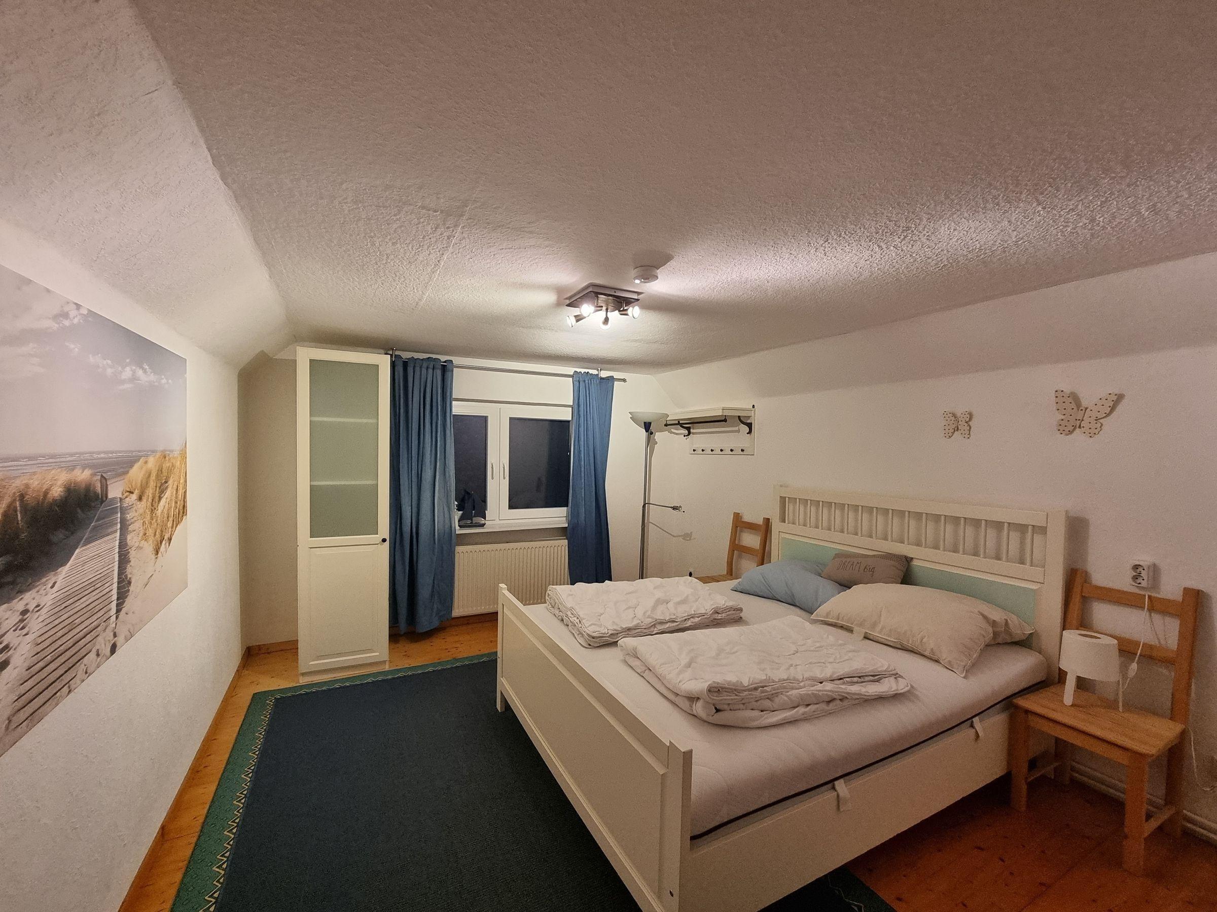 Die Ferienwohnung bietet ein großzügiges Raumkonzept mit vier Schlafzimmern, darunter drei Doppelbetten, zwei Einzelbetten und ein Kinderbett. Zwei moderne Badezimmer, eines davon mit Fenster, sorgen für optimalen Komfort. Die separate Küche ist komplett ausgestattet mit einem Elektro-/Gasherd, Geschirrspüler, Backofen, Mikrowelle, Kühlschrank mit Gefriermöglichkeit und einer Kaffeemaschine.