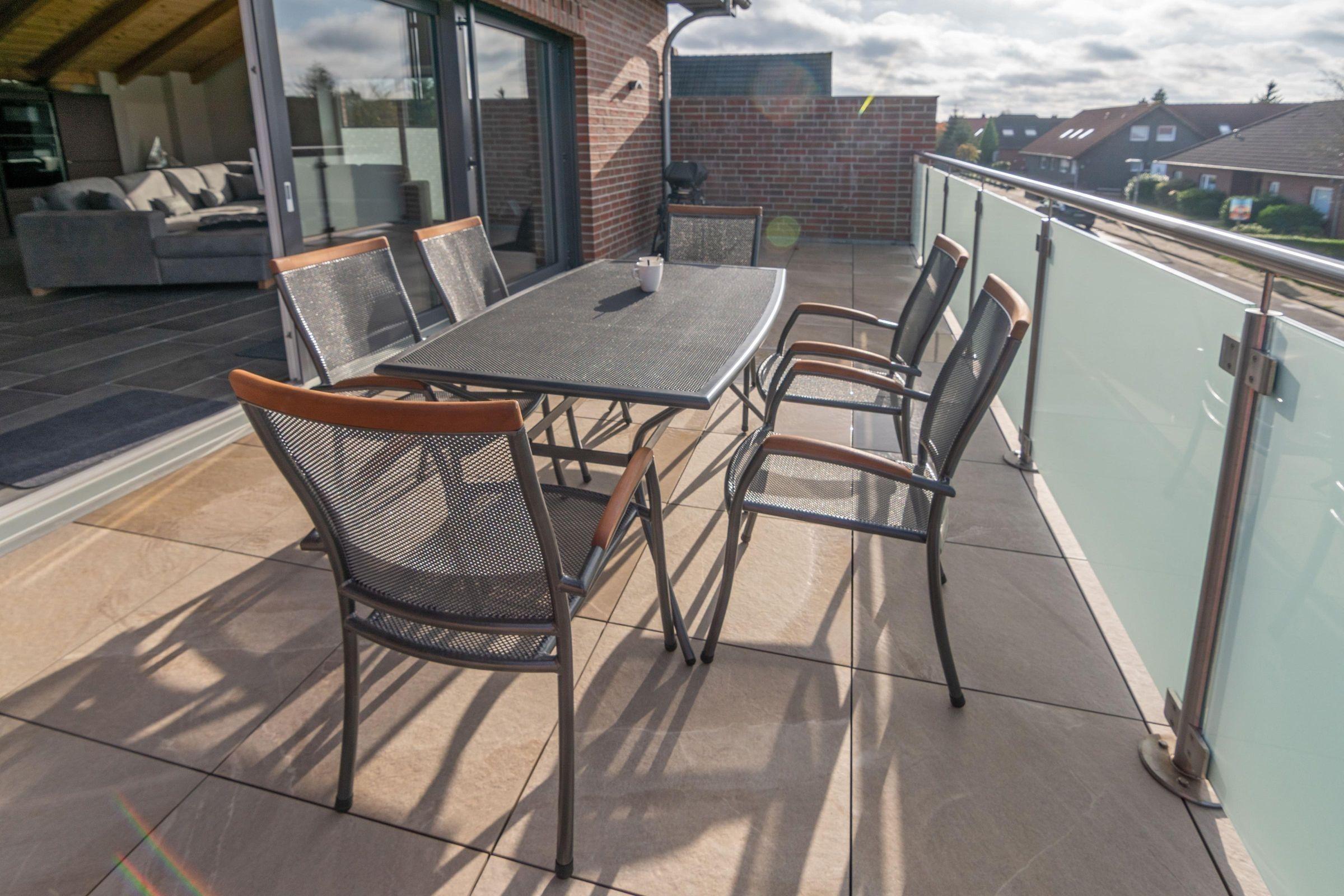 Die Ferienwohnung überzeugt mit einem privaten Außenbereich, der eine einladende Terrasse mit Markise und eine große Liegewiese umfasst. Ein eigener Garten lädt zum Entspannen ein, während ein Elektrogrill zum geselligen BBQ einlädt. Zudem stehen E-Ladestationen für Autos und Elektrofahrräder zur Verfügung, was zusätzlichen Komfort bietet. Hier wird der Aufenthalt zum Genuss.