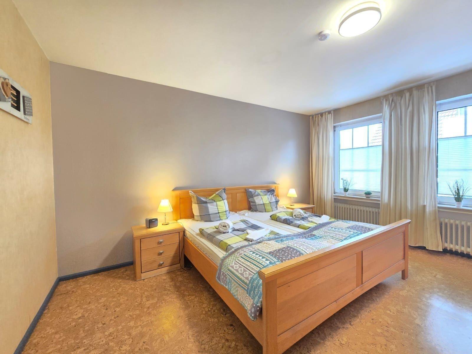 Die Ferienwohnung bietet eine großzügige, allergikergeeignete Gestaltung und überzeugt durch ihre moderne Ausstattung. Ein einladendes Schlafzimmer mit einem Doppelbett sorgt für erholsame Nächte, während das Wohnschlafzimmer mit einer Schlafcouch zusätzlichen Platz bietet. Die offene Küche ist mit einem Elektro-/Gasherd, Geschirrspüler, Backofen, Mikrowelle, Kühlschrank und Küchenmaschine ausgestattet und lädt zum gemeinsamen Kochen ein. Ein Esstisch ist ebenfalls vorhanden, ebenso wie ein Starterset an Gewürzen und Geschirrtüchern.