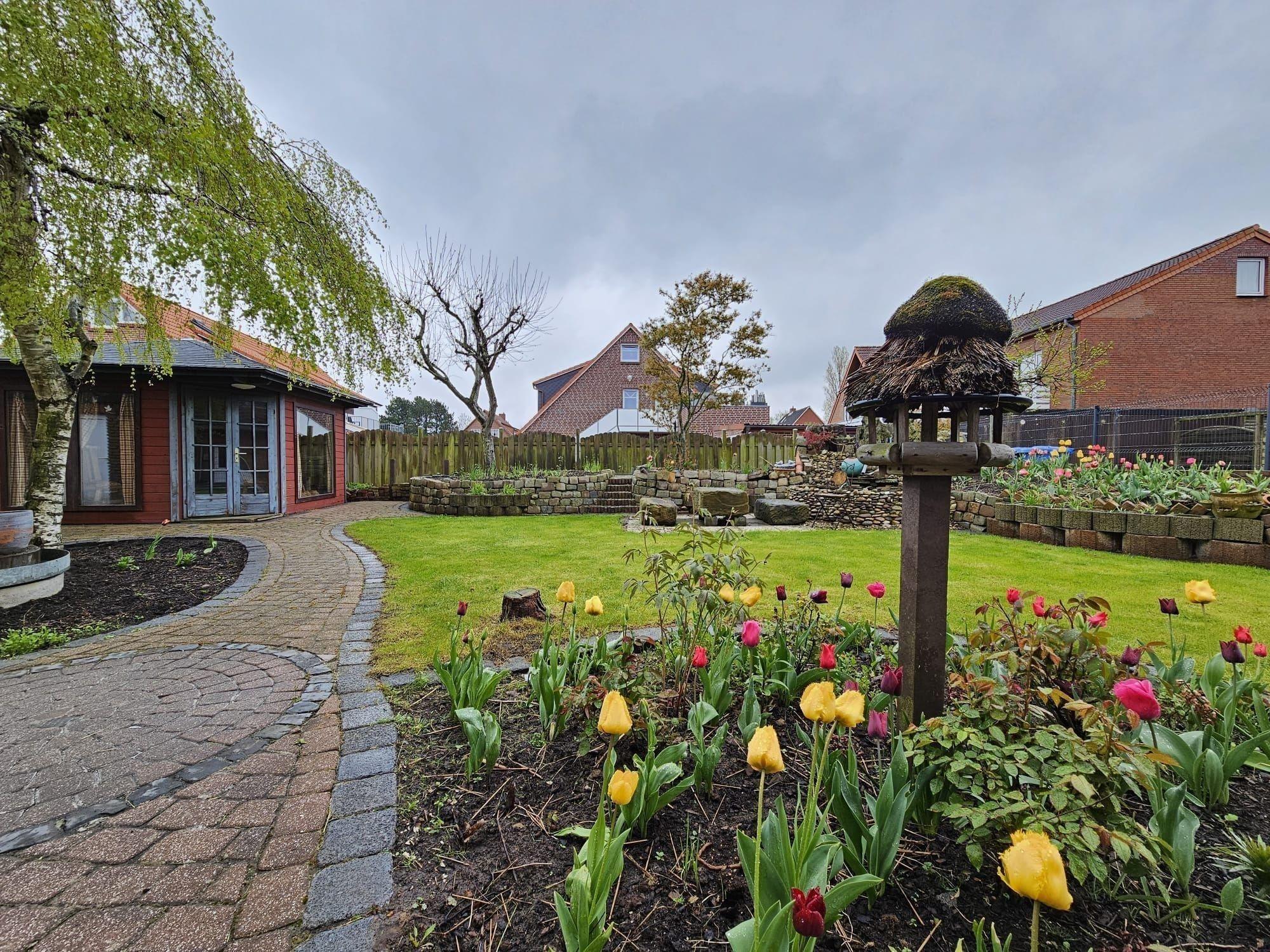 Die Ferienwohnung bietet einen idyllischen Außenbereich mit eigenem Garten, der zum Entspannen einlädt. Ein Holzkohlegrill steht bereit für gesellige Grillabende. Gartenliegen und Liegestühle sorgen für Komfort auf der Liegewiese, während der Teich für eine ruhige Atmosphäre sorgt. Eine Garage rundet das Angebot ab und bietet zusätzlichen Komfort für die Gäste.