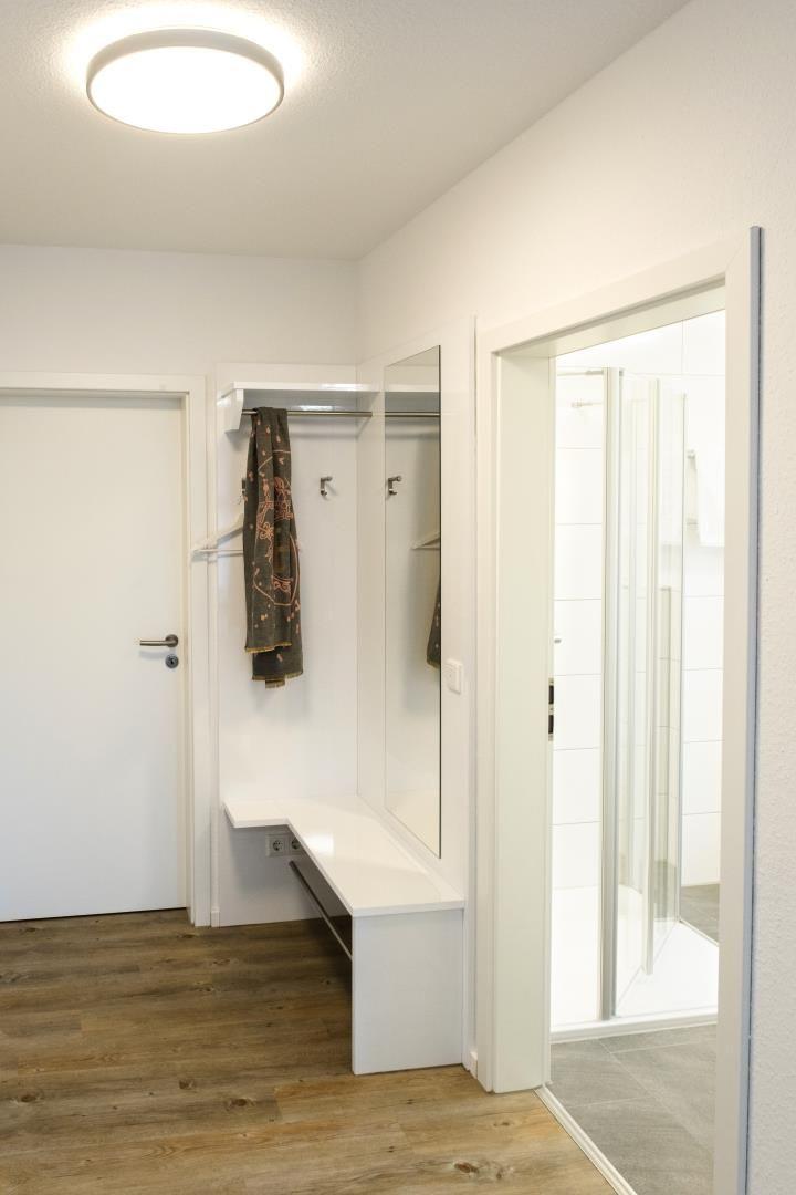 Die Garderobe am Eingang bietet einen Ganzkörperspiegel, Schuhablage und andere Ablagemöglichkeiten. In einem kleinen Abstellraum innerhalb der Wohnung befinden sich eine Miele Waschmaschine und ein Miele Trockner. Staubsauger, Bügelbrett, Bügeleisen, Trittleiter, Wäscheständer und diverse andere kleine Hilfsmittel lassen unumgänglich anstehende Hausarbeiten mit Freude erledigen.