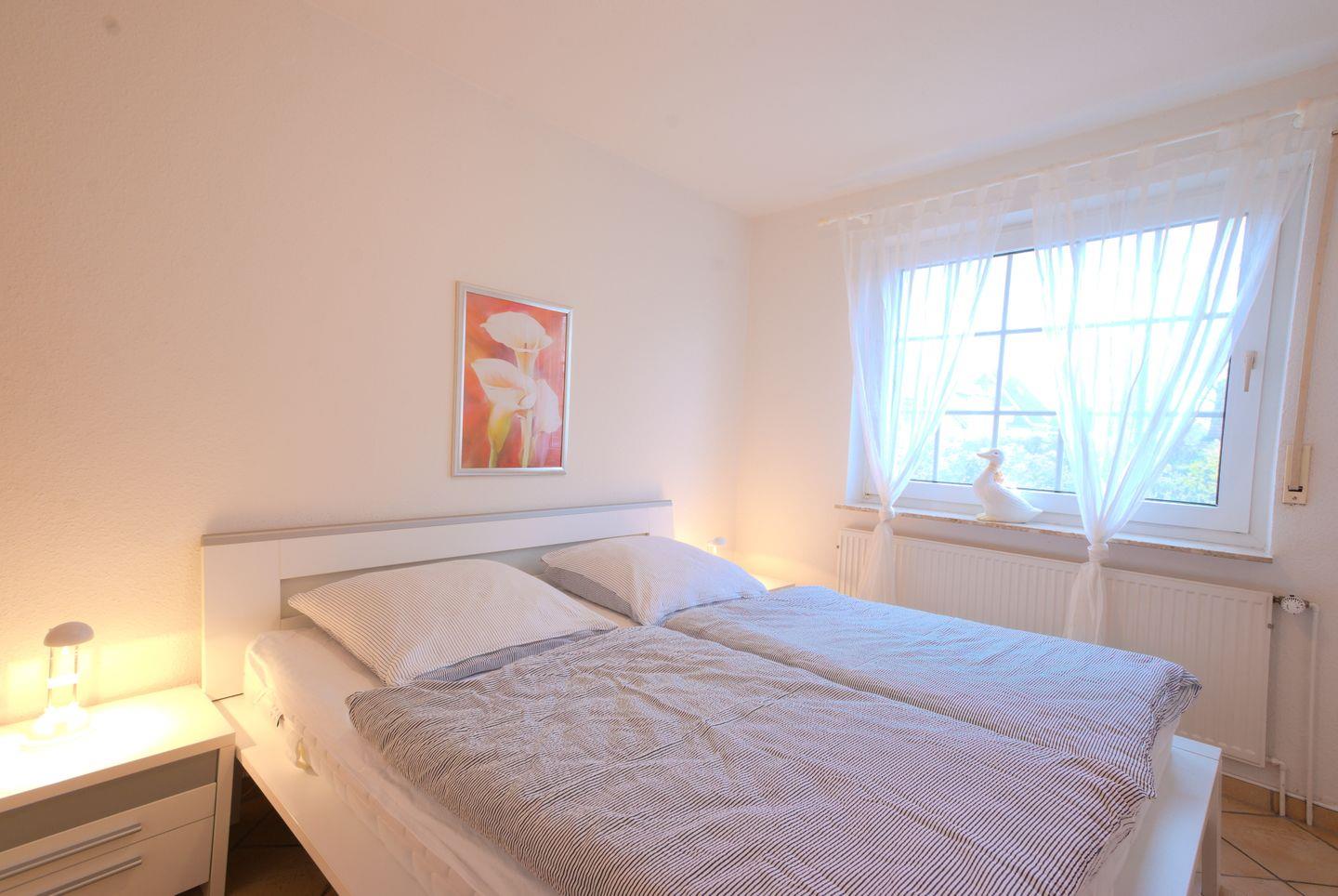 Die Wohnung Möwe 1 befindet sich im Erdgeschoss eines ruhig gelegenen Wohnhauses. Die Wohnung ist freundlich hell eingerichtet und verfügt über ein Schlafzimmer mit Doppelbett und Kleiderschrank.