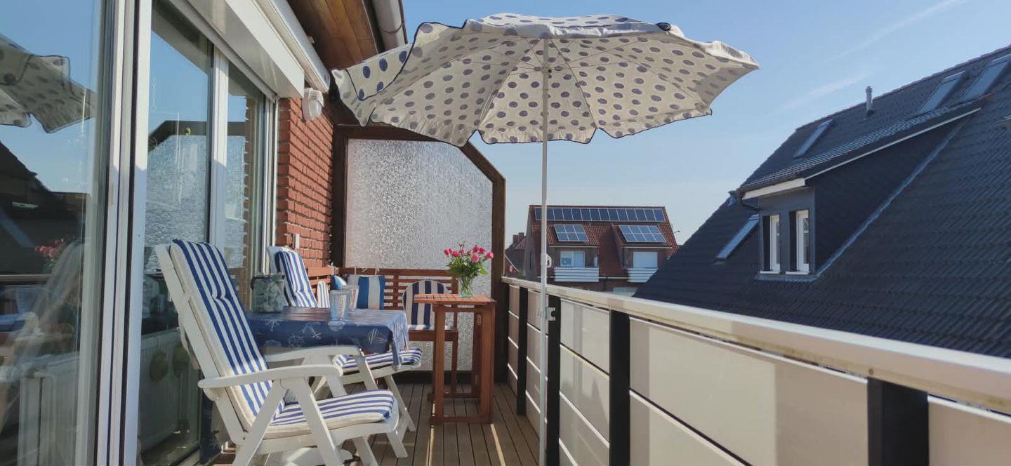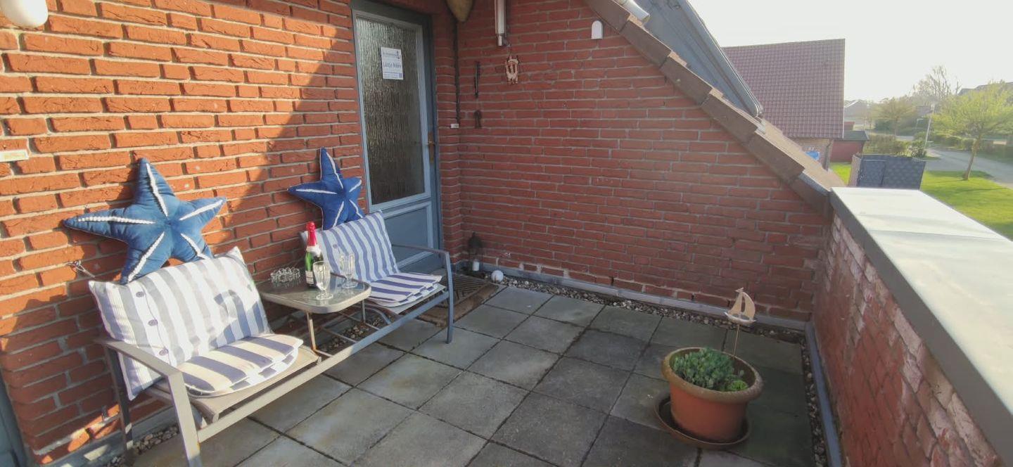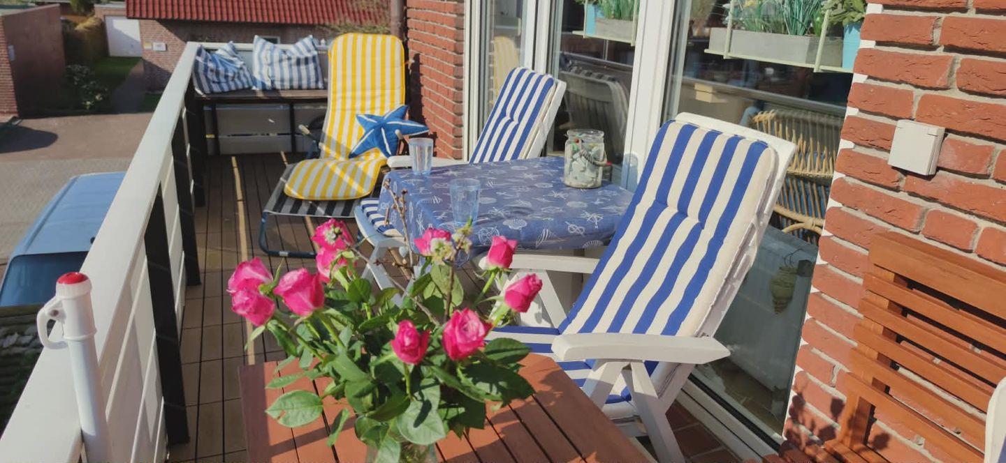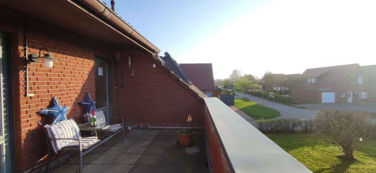 Ein echtes Highlight ist der sonnige Balkon: Hier schmeckt der Kaffee besonders gut, die Nordseeluft ist klar und frisch – und der perfekte Ort für eine kleine Pause zwischendurch oder einen stimmungsvollen Abend.