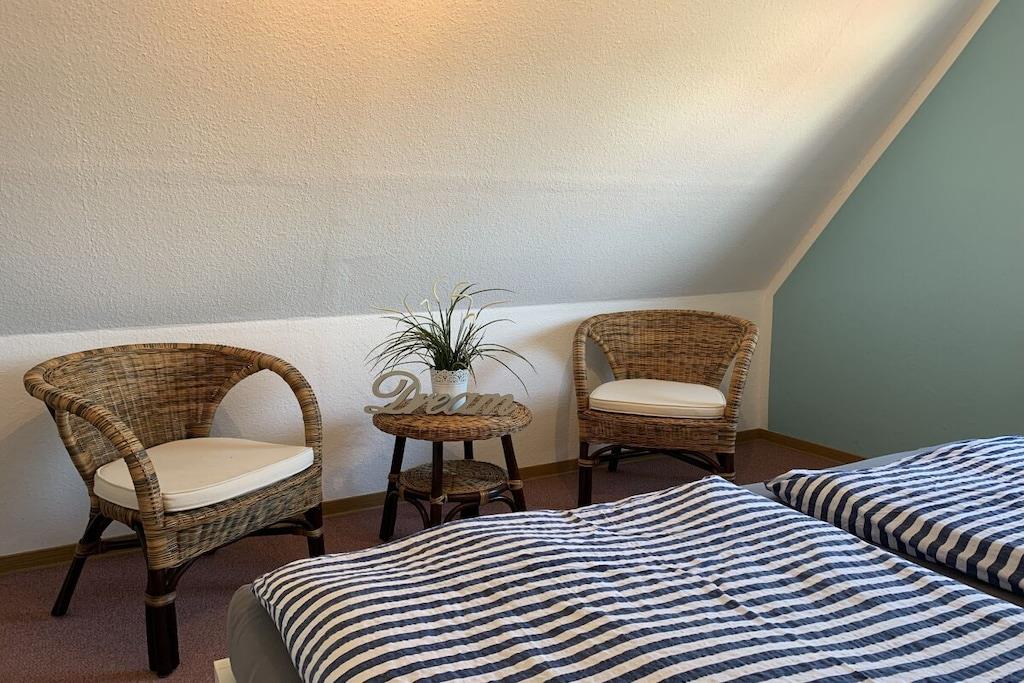 Vår delvis renoverte ferieleilighet har kjøkken, stue og dusjrom i første etasje, og to separate soverom på loftet. Sengetøy, håndklær og Wi-Fi er inkludert. Leiligheten ligger i hjertet av Nordhelm-byen, bare en kort spasertur fra den vakre Nordstranden. Et EDEKA-supermarked, et bakeri, en restaurant og en sykkelutleiebutikk ligger alle innen gangavstand.