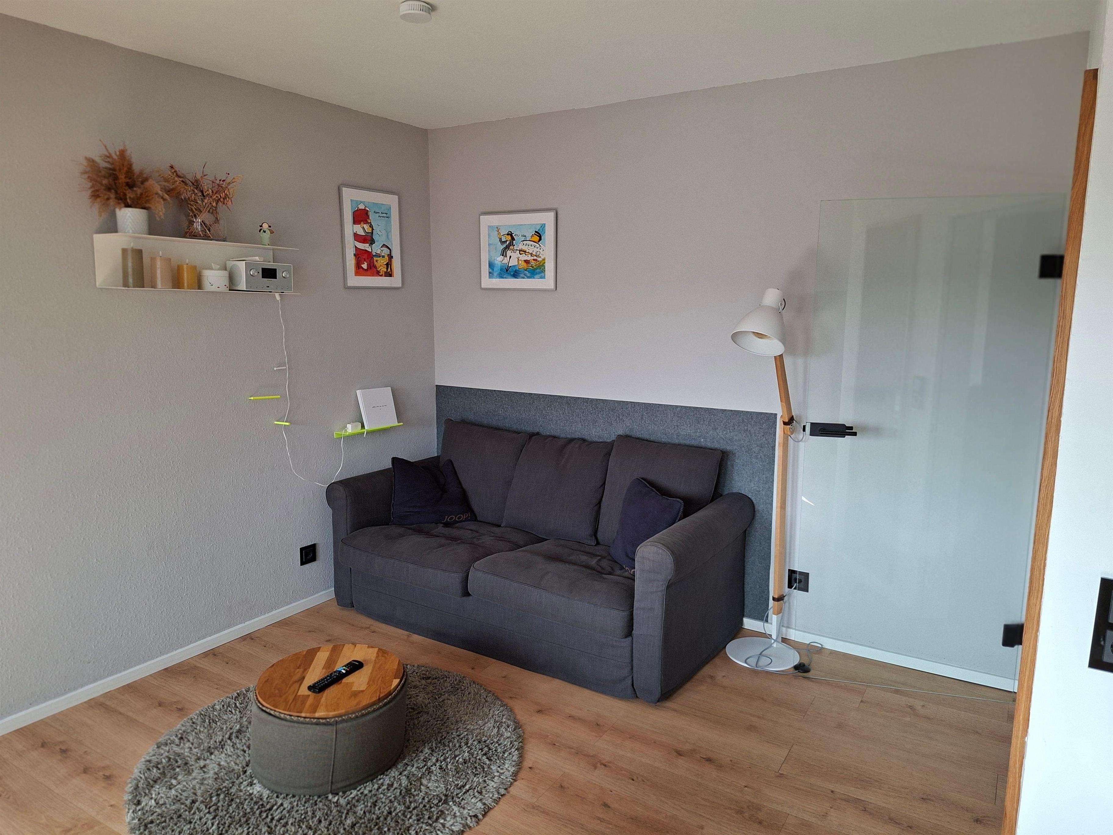 Im Wohnbereich kann man den Tag entspannt auf dem gemütlichen Sofa ausklingen lassen. Es bietet Internetradio, kostenloses WLAN und einen Smart-TV mit Sonos-Soundbar, der sich in verschiedene Positionen verstellen lässt. Ebenso steht eine Playstation 4 mit diversen Spielen zur Verfügung.