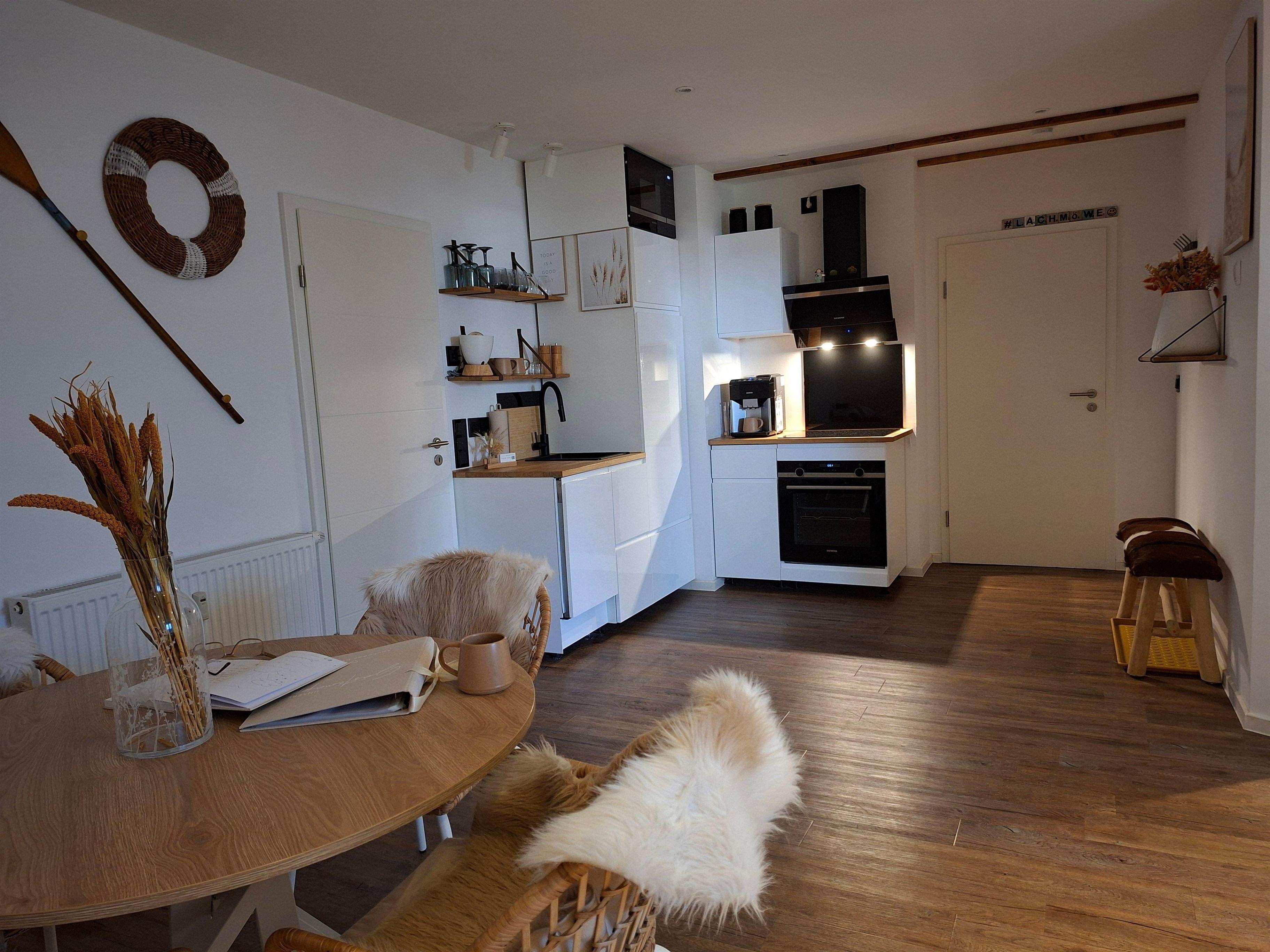 Bei der Ferienwohnung Lachmöwe by DeJu, welche Anfang 2025 vollumfänglich renoviert wurde, handelt es sich um ein gemütliches, im Erdgeschoss befindliches 2-Raum-Appartement mit Terrasse im Haus Meeresloft. Ein Glasfaseranschluss ist ebenso vorhanden. Das Haus Meeresloft ist ein KFW-Energieeffizienzhaus 100. Die Wohnung verfügt somit mitunter über 3-fach verglaste Fenster, eine kontrollierte Be- und Entlüftungsanlage, elektrische Verdunklungsrolladen von außen sowie ultraeffiziente Beleuchtungsmittel in den Deckenspots.