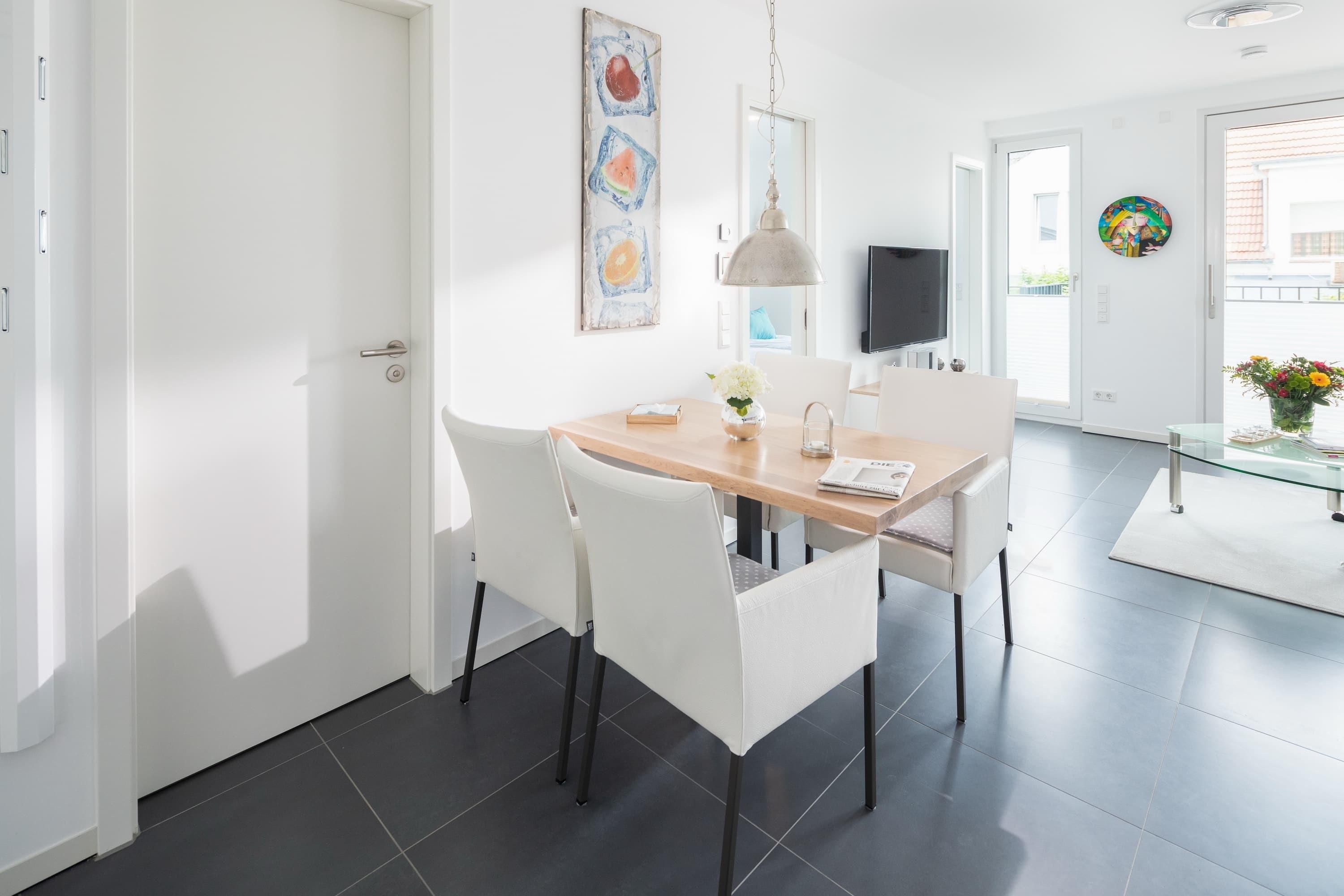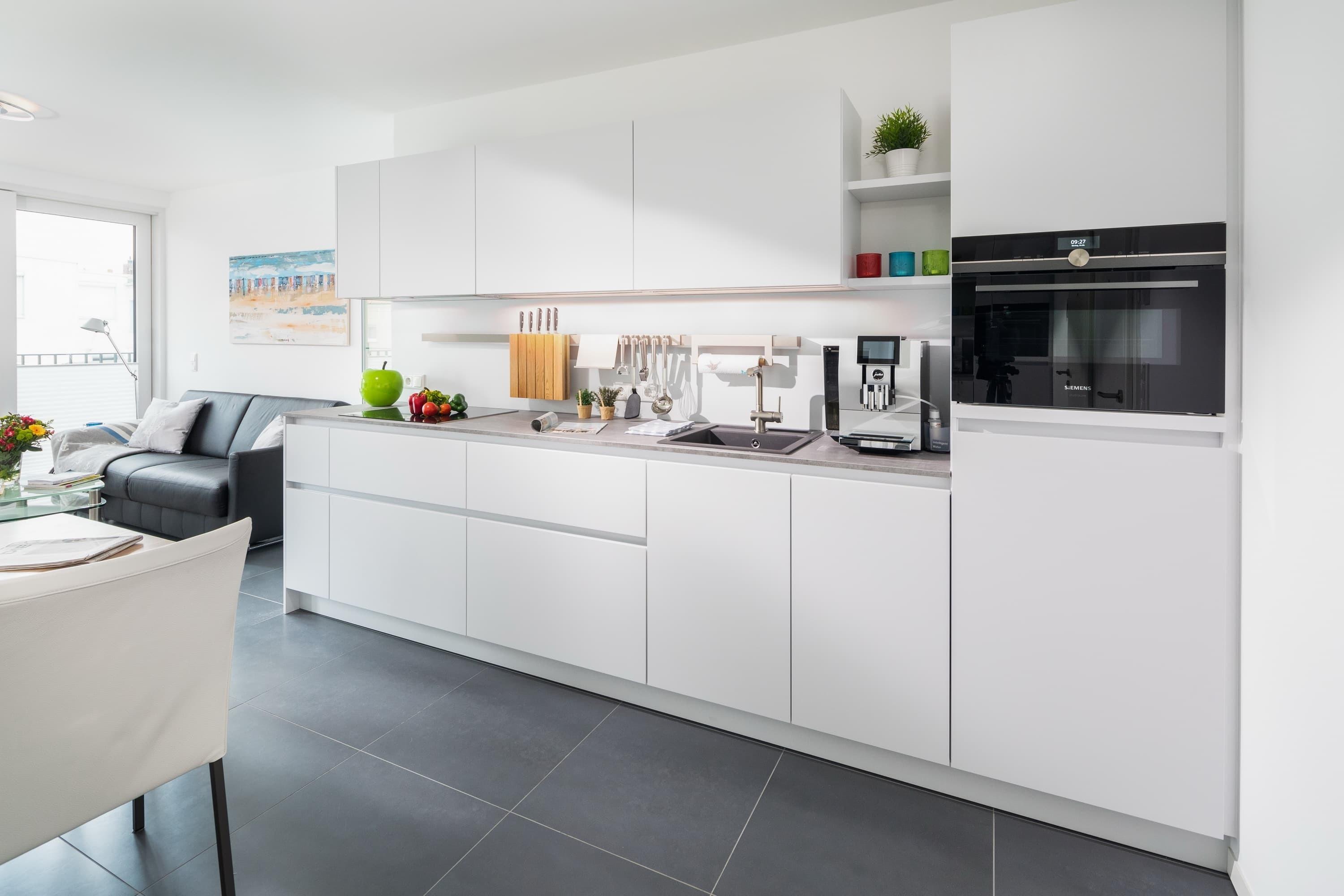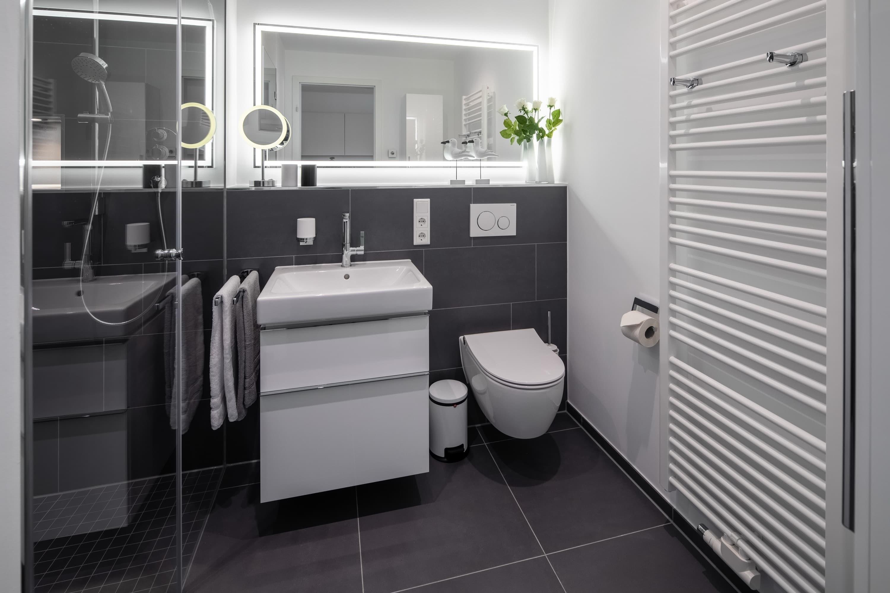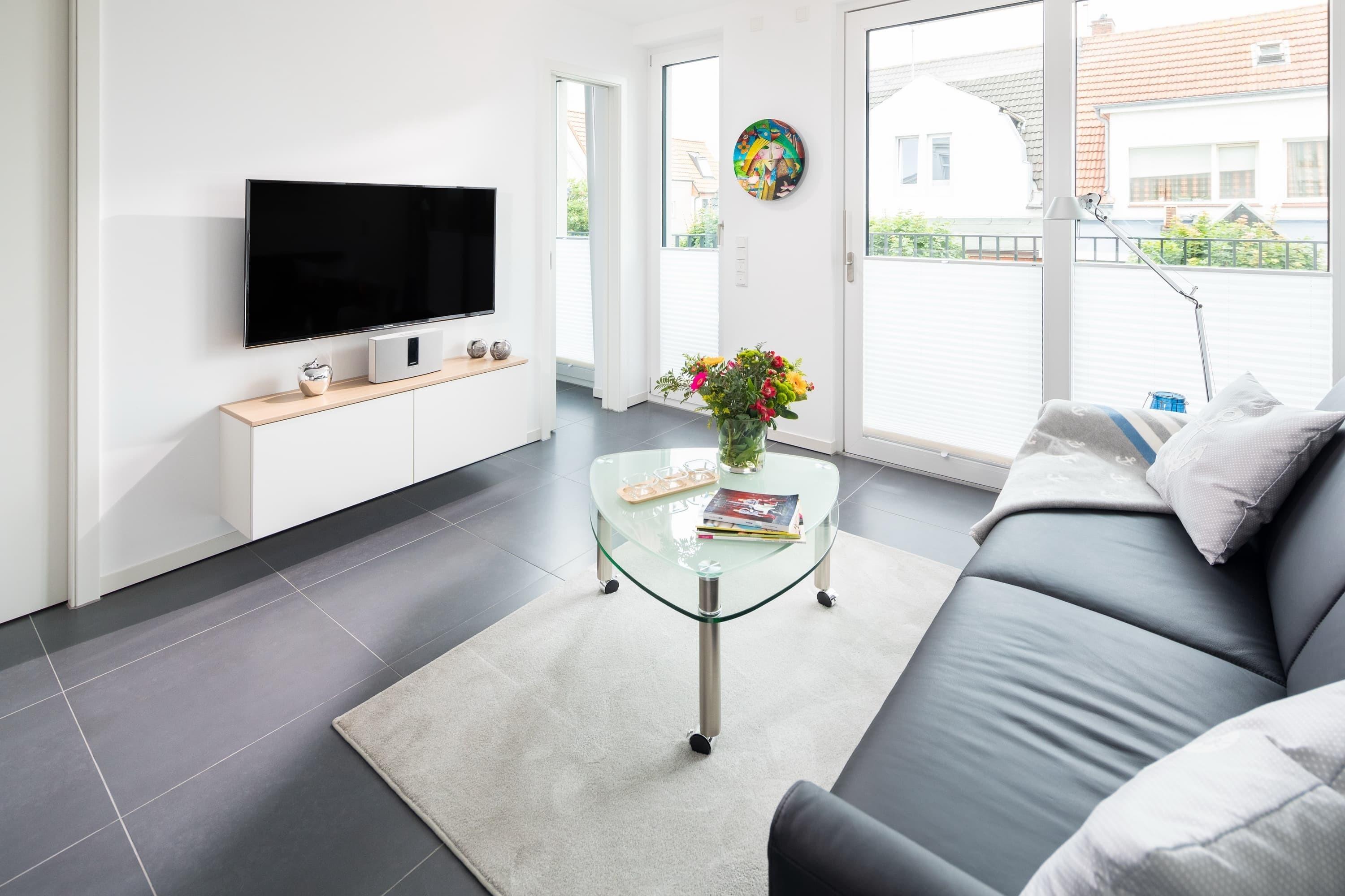 Die Wohnung liegt im ersten Stock eines im Mai 2018 fertig gestellten Neubaus. Sie besticht durch ihre Helligkeit und ihren großzügigen Schnitt. Alles wurde detailverliebt und mit besonderem Blick auf Hochwertigkeit für Sie gestaltet. Im Wohnbereich finden Sie neben der Einbauküche mit Jura-Kaffeevollautomaten einen Esstisch mit 4 Stühlen, eine Garderobe, ein Sofa (das sich mit weniger Handgriffen zu einem vollwertigen Bett mit Lattenrost ausziehen lässt) den Zugang zum geräumigen Südbalkon. Das „Norderneyer Schlafzimmer“ bietet neben dem 1,80m breiten Bett einen geräumigen Kleiderschrank. Das komfortable Duschbad mit Regendusche ist mit Fön, Kosmetikspiegel, Handtuchwärmer etc ausgestattet. Waschmaschine und Trockner stehen gegen Gebühr zu Verfügung. Fahrräder können hinter dem Haus abgestellt werden.