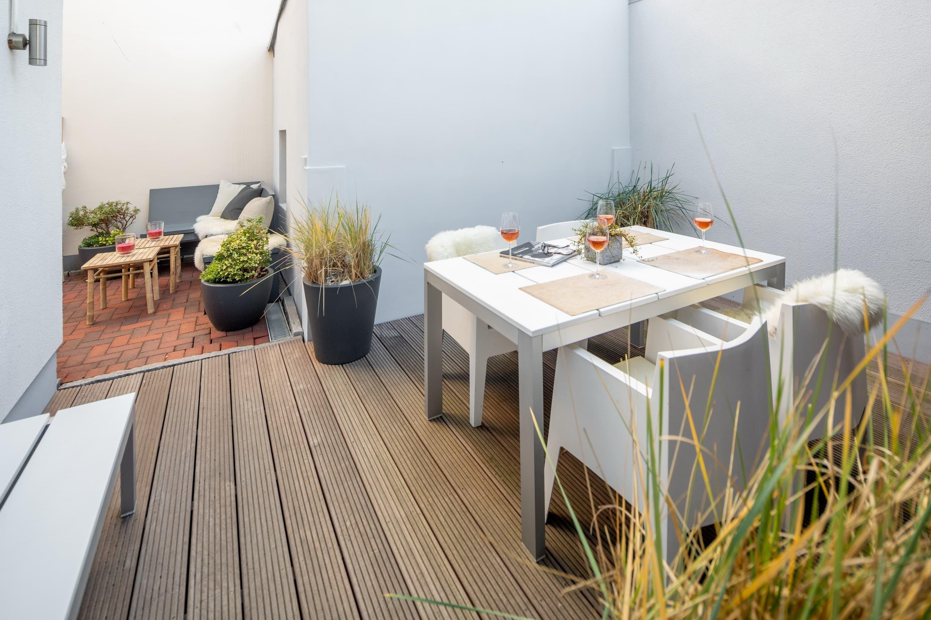 Im geräumigen und windgeschützten Innenhof kann man es sich gemeinsam am großen Esstisch gemütlich machen, auf der Bank etwas lesen oder im Strandkorb entspannen. Ein mit sehr viel Liebe eingerichtetes Traumhaus zum Wohlfühlen! Auch Ihre Hunde sind hier herzlich willkommen.