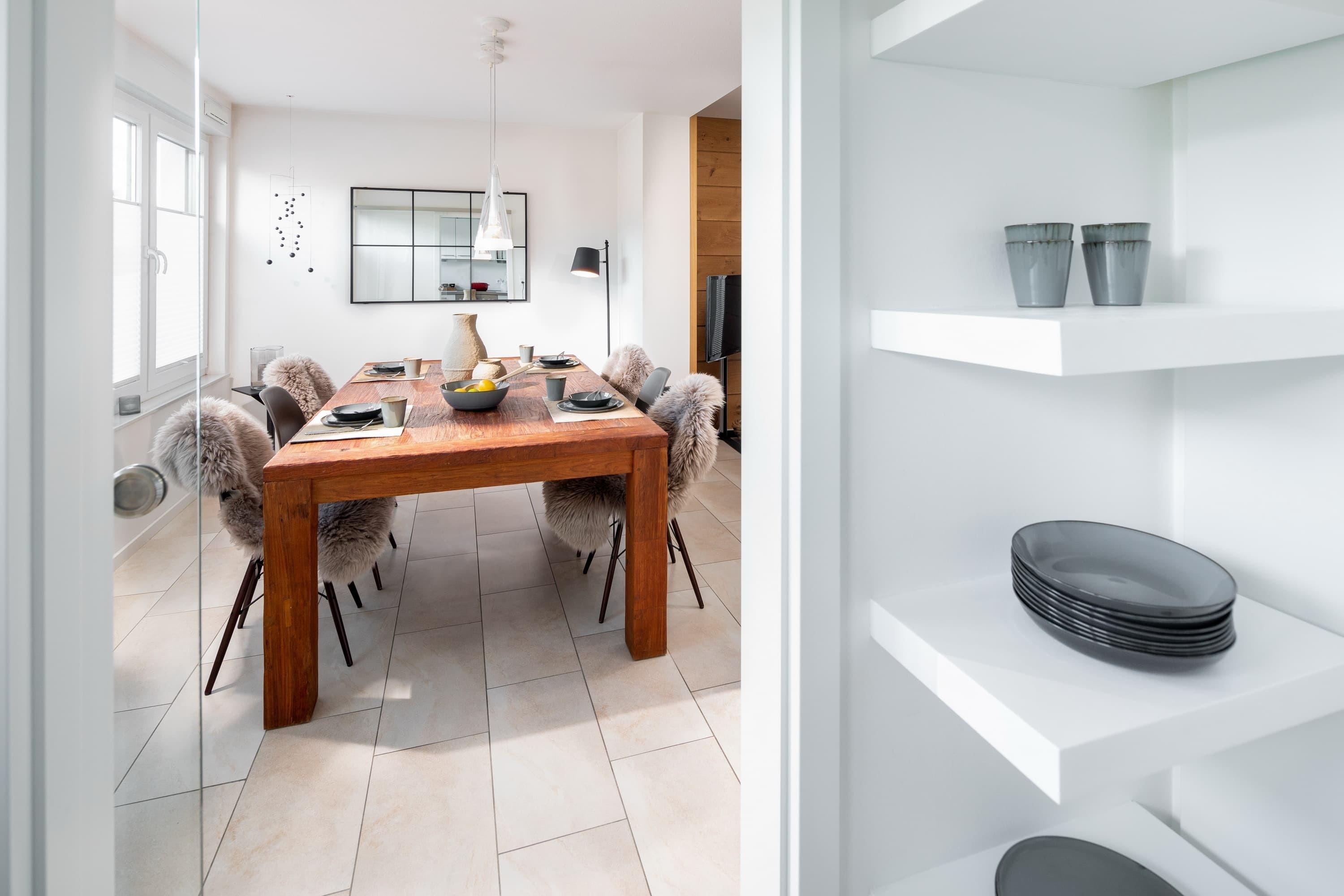 Das „Seehaus 48“ liegt nur wenige Minuten vom Nordstrand und dem Surfcafé entfernt. Es bietet auf 2 Ebenen Urlaubskomfort für eine Familie oder drei Pärchen. Im unteren Bereich findet sich neben dem geräumigen Wohnzimmer mit großem Essbereich die hochwertige Einbauküche. Diese ist u.a. mit Geschirrspüler und diversen Kleingeräten (3x Kaffeemaschine, Toaster, Wasserkocher, Eierkocher, Smoothiemixer, Waffeleisen,…) perfekt für kochaffine Gäste ausgestattet. Im Abstellraum lassen sich bequem die nötige Vorräte verstauen.