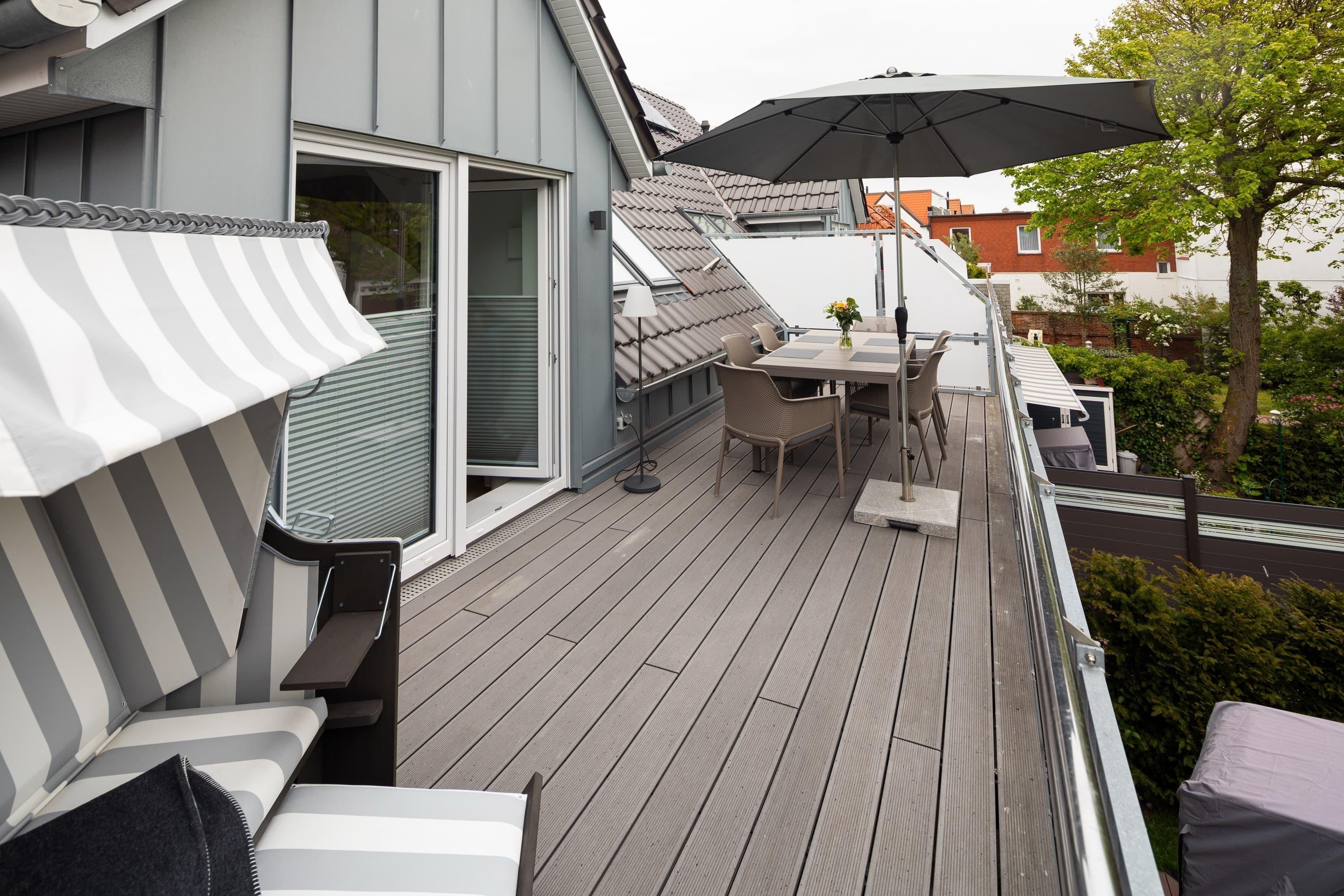 Das absolute Highlight: die rund 20 m² große Dachterrasse zur Gartenseite – ideal für sonnige Frühstücke, Lesestunden oder laue Abende unter freiem Himmel.