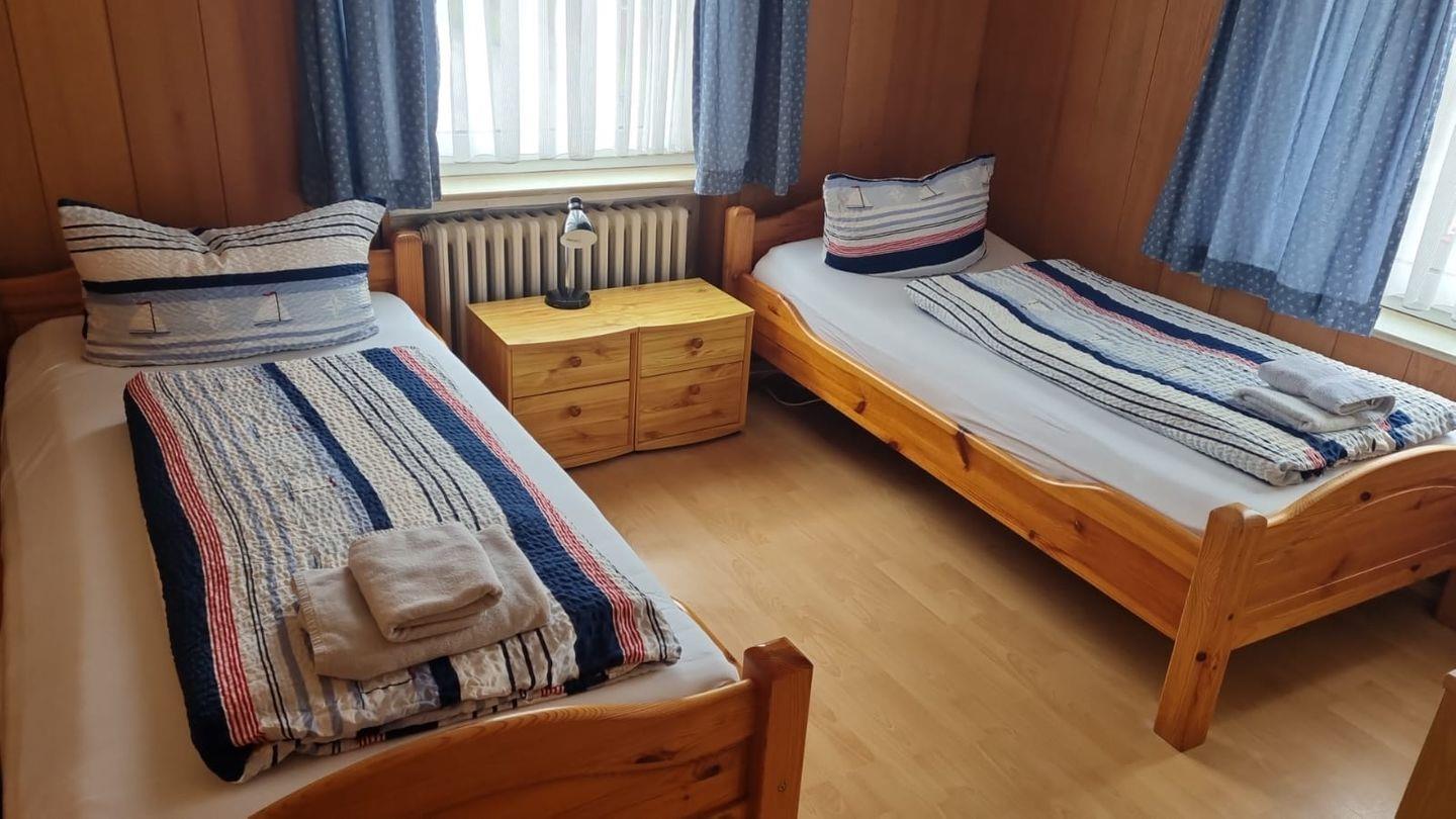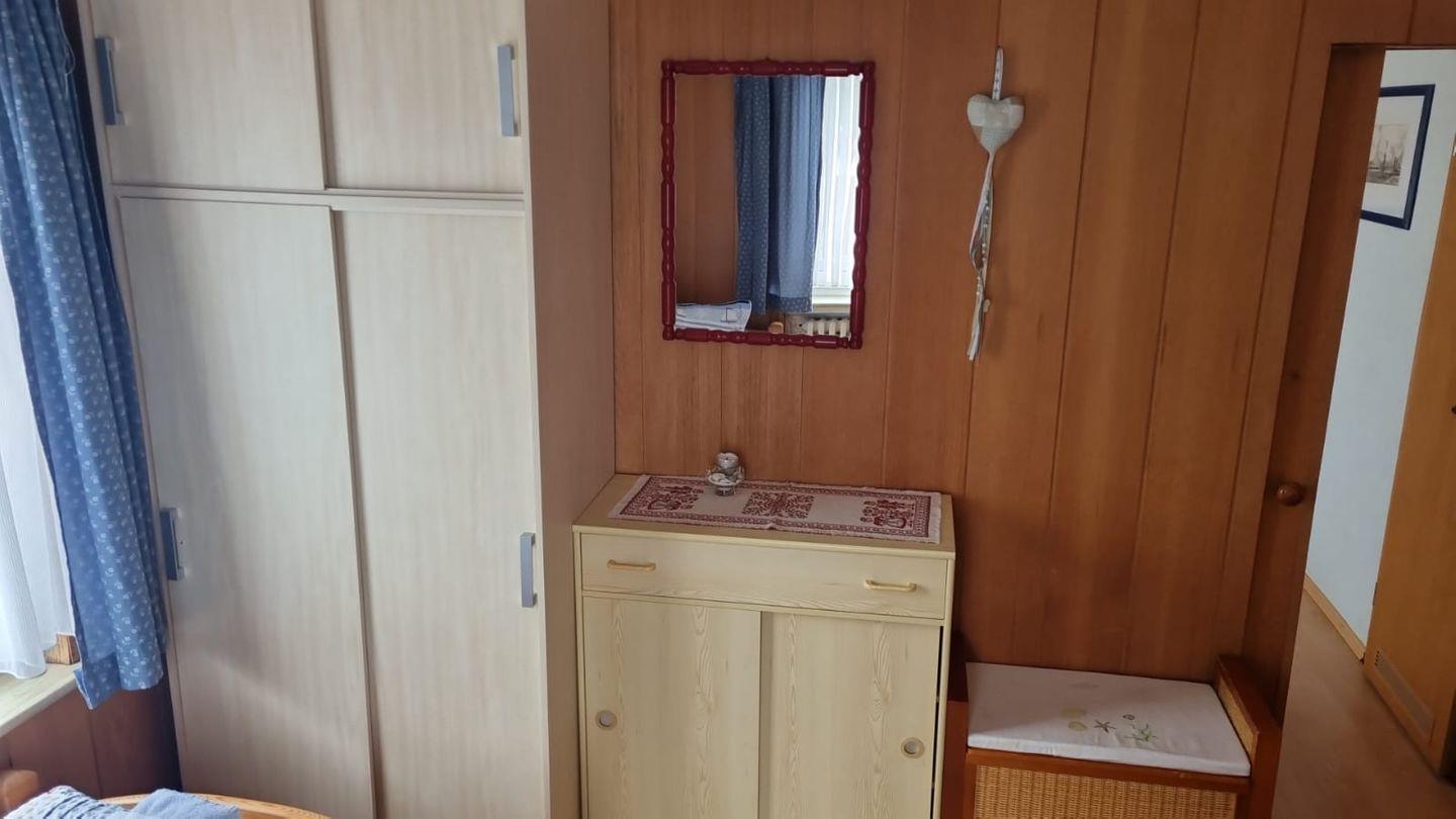 Strandnah und am Rande der Stadtmitte können Sie im Haus die schönsten Tage des Jahres genießen. Unsere Wohnung "Mimi" ist für zwei Personen bestens geeignet. Sie ist ca. 30 qm groß, verfügt über ein separatesSchlafzimmer und einem Wohnraum mit Küchenzeile und ist mit SAT-TV (Flachbildschirm), Radio und CD-Player ausgestattet. Haustiere sind leider nicht erlaubt. Kostenlose Internetverbindung per WLAN.