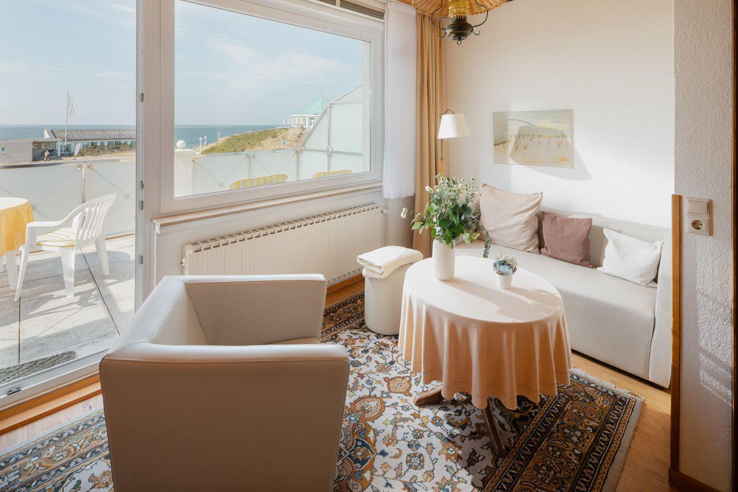 Das Haus Meeresblick, Damenpfad 24 liegt zentral und in unmittelbarer Nähe der Strandpromenade und der Strandkorbwiese. Die Wohnung 6 liegt im 2. OG, ohne Fahrstuhl. Das Kur - und Einkaufszentrum, das BADEHAUS und die Fußgängerzone sind in wenigen Minuten zu Fuß zu erreichen. Das Haus hat 7 Wohnungen und ist ganzjährig geöffnet. Viel Holz wurde verwendet, um eine wohnliche Atmosphäre zu schaffen. Die Treppen sind mit Läufern ausgelegt, so dass unbedingte Ruhe gegeben ist. Zur kompletten Ausstattung aller Wohnungen gehören Kabel-TV. Tiere können nicht mitgebracht werden