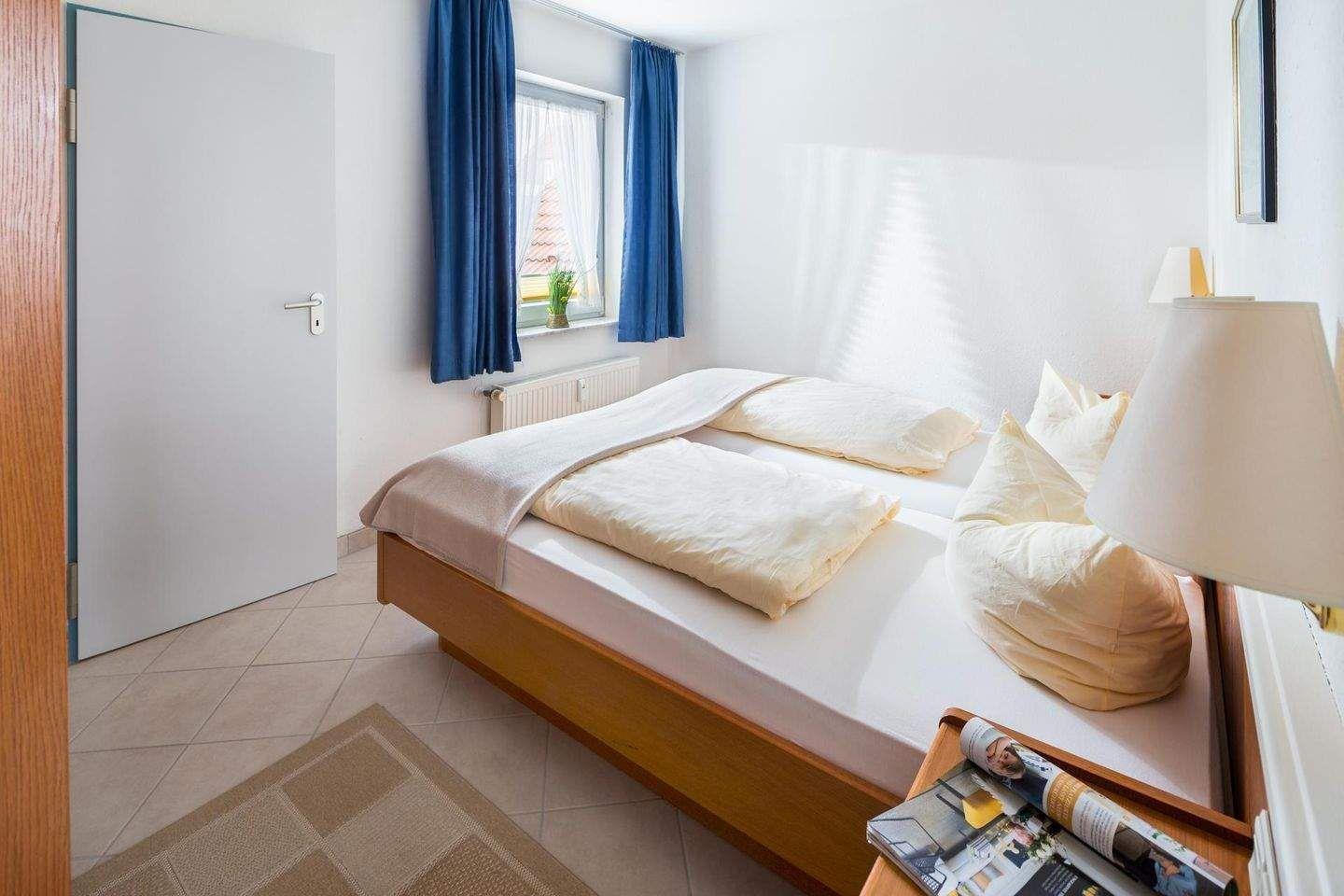 Die Wohnung verfügt über ein Schlafzimmer mit einem Doppelbett und ein Wohnzimmer mit einer Ausziehcouch, die bei Bedarf 1-2 weiteren Personen Platz bietet. Die Küchenzeile ist voll ausgestattet. Das Badezimmer ist mit einer Dusche und einem WC ausgestattet. Ein besonderes Highlight der Wohnung "Regina Maris 6" ist die großzügige Balkkon, die nach Osten ausgerichtet ist. Hunde sind in dieser Wohnung nicht erlaubt.