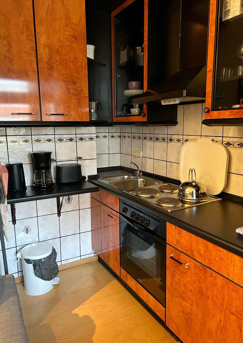 Die zentral gelegene 1-Raum-Ferienwohnung (ca. 20 m²) bietet einen kombinierten Wohn-/Schlafbereich mit TV und einem komfortablen Schlafsofa (150×200 cm). Die gut ausgestattete Küchenzeile verfügt über einen 4-Platten-Herd, Backofen und einen kleinen Essbereich. Ein separates Badezimmer mit Dusche und WC ist ebenfalls vorhanden. Es handelt sich um eine Nichtraucherwohnung.