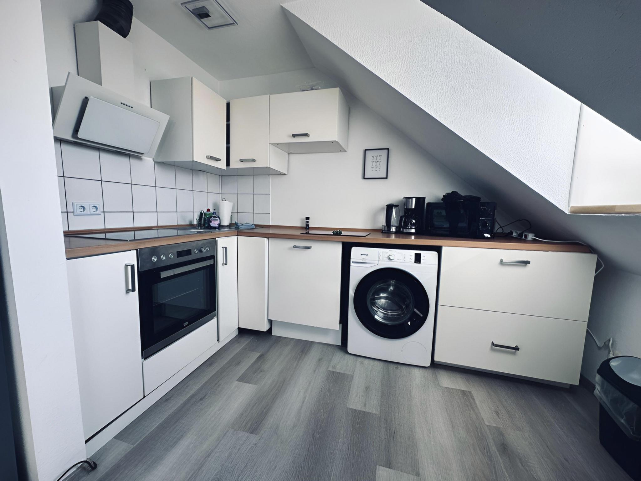 Inside, a cosy ambience awaits you, complemented by the interplay of a comfortable bedroom, a modern bathroom with shower and a well-equipped kitchen with ceramic hob, dishwasher and kettle. The cosy living and dining area invites you to linger, while the washing machine for your sole use makes your stay in the holiday flat even more pleasant.