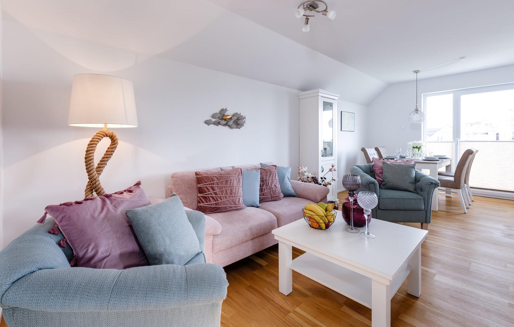På ferie er det tid til kreativ matlaging, og det fullt utstyrte spisekjøkkenet lar ikke noe tilbake å ønske. I direkte tilknytning til spiseplassen ligger den romslige sørøstvendte solterrassen med to solsenger. Her kan du nyte solen fra morgen til kveld. I stuen finner du en Smart-TV med Telekom Home Entertainment-program. Leiligheten er utstyrt med WiFi, slik at du kan surfe på nettet når du vil.