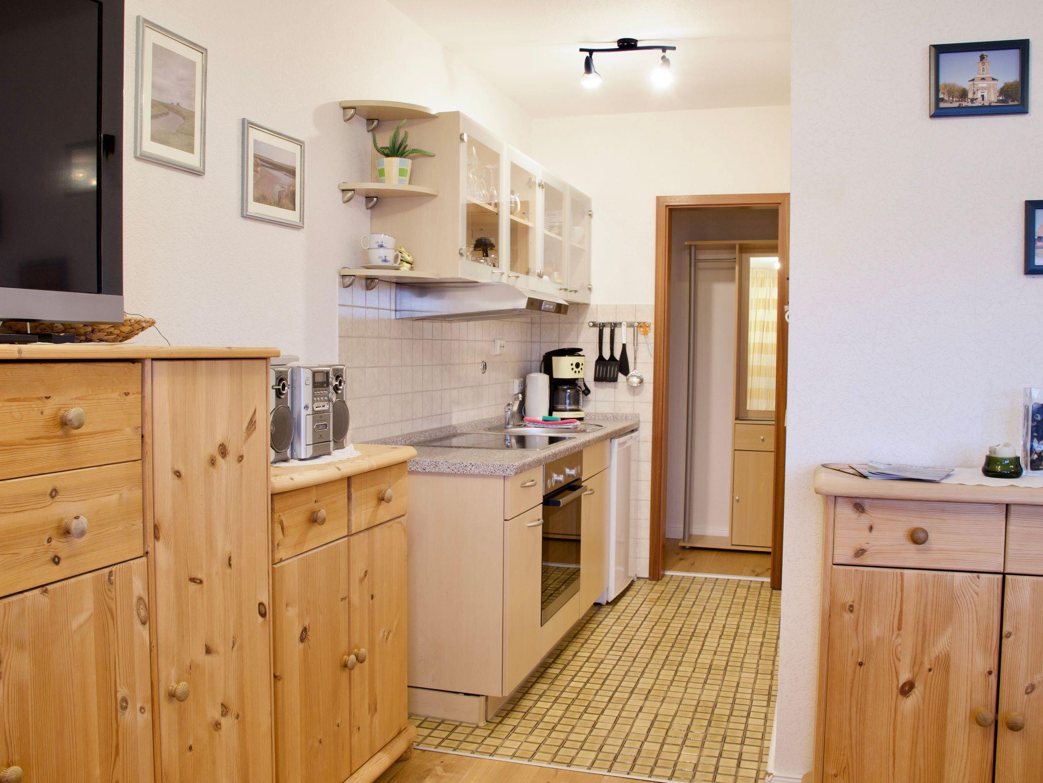 Die Küchenzeile ist funktional und übersichtlich gestaltet und bietet alles, was für den täglichen Komfort benötigt wird. Eine Kaffeemaschine sowie eine Gefriermöglichkeit stehen zur Verfügung und machen auch längere Aufenthalte angenehm.