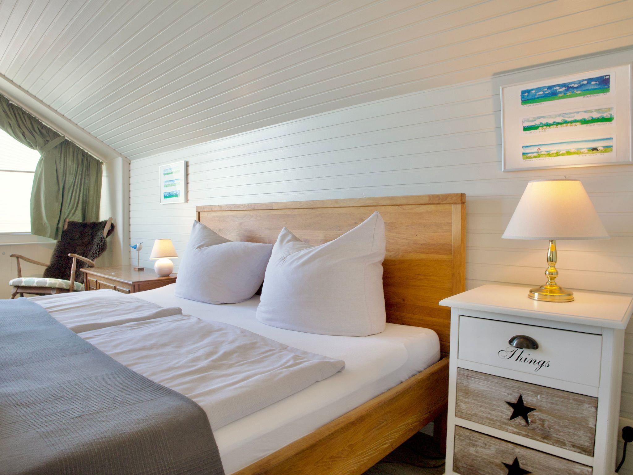 Die helle und liebevoll eingerichtete Wohnung greift den Charakter der nordfriesischen Küstenlandschaft auf und wirkt ruhig und einladend. Viele Fenster sorgen für eine freundliche Atmosphäre und lassen viel Tageslicht in die Räume. Eine ruhige Essecke an der Fensterfront bietet einen angenehmen Platz, um den Blick nach draußen schweifen zu lassen.