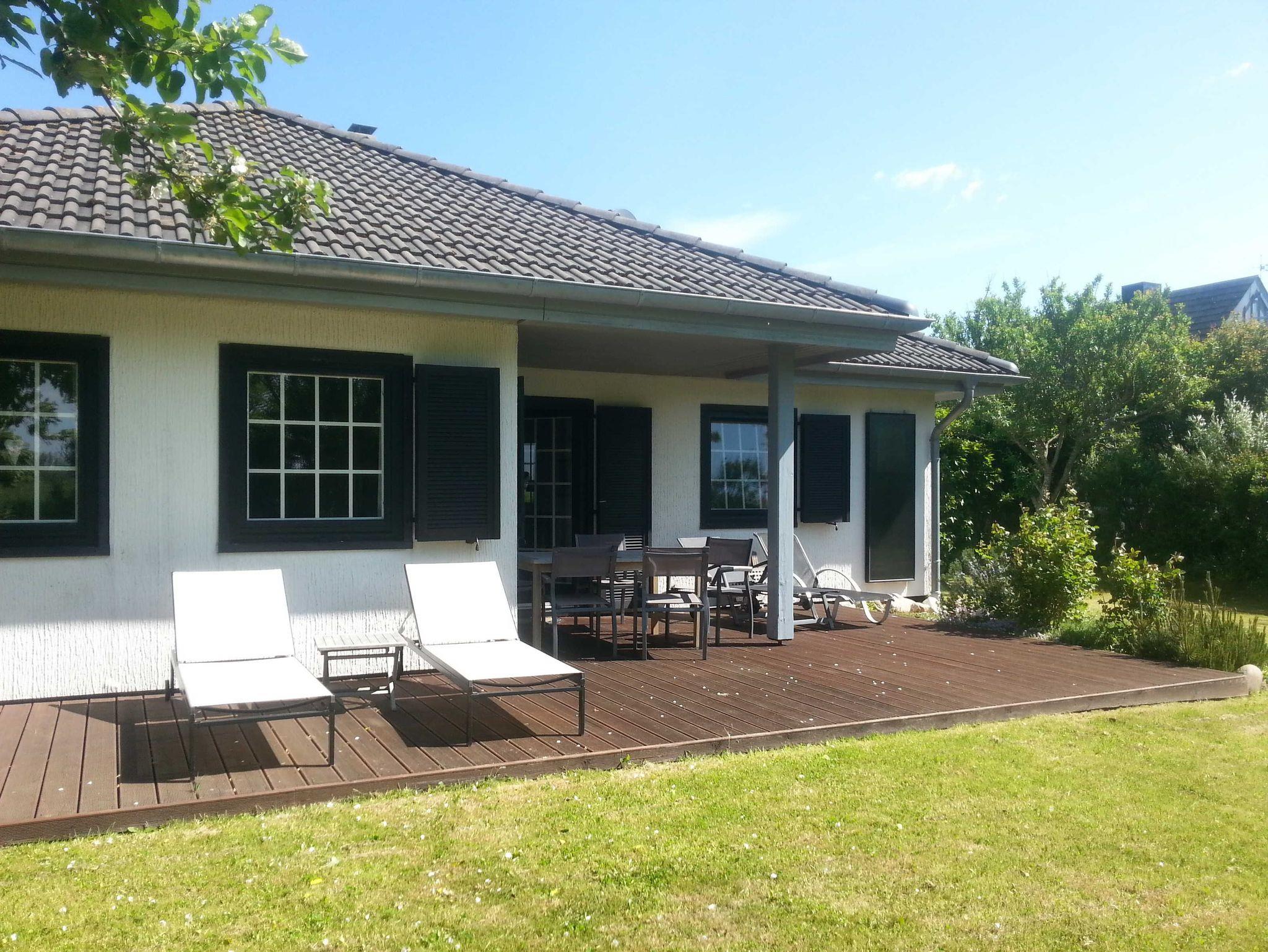 Die 20 m² große Holzterrasse, vollmöbliert inkl. Strandkorb befindet sich in einem traumhaften Garten und bietet Zugang zu einer sonnigen Liegewiese, die nach Süden ausgerichtet ist. Von hier aus genießen Sie einen herrlichen Weitblick über die Felder bis hin zum Außendeich.