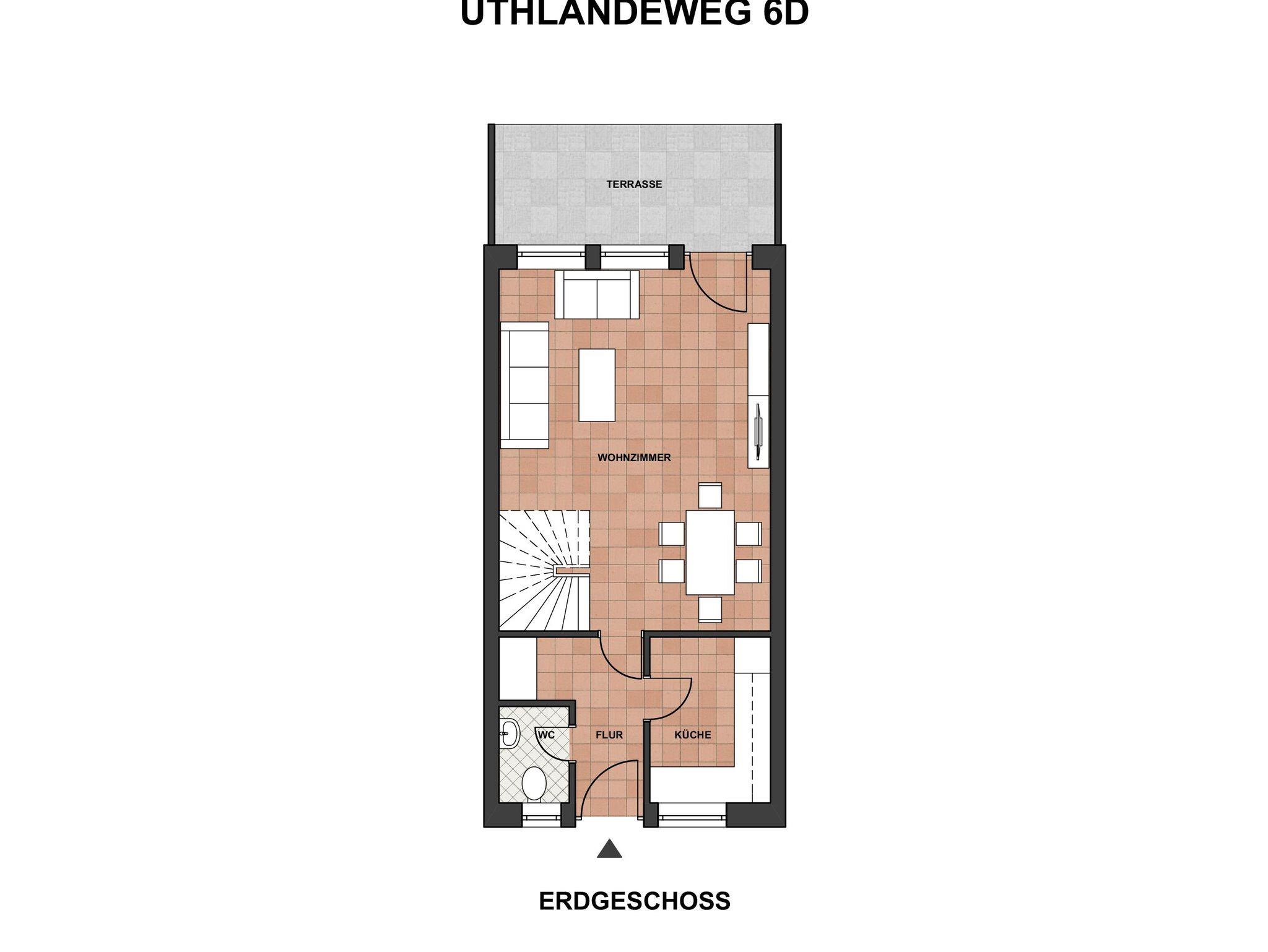 Im Erdgeschoss erwartet Sie ein einladendes Wohnzimmer mit separatem Wohn- und Essbereich. Die Küche ist vollständig ausgestattet und verfügt über eine Spülmaschine, Mikrowelle und weitere praktische Küchengeräte. Vom Flur aus erreichen Sie ein zusätzliches Gäste-WC. Vom Wohnzimmer aus gelangen Sie auf die sonnige, möblierte Südterrasse mit eigenem Strandkorb ? perfekt zum Entspannen.