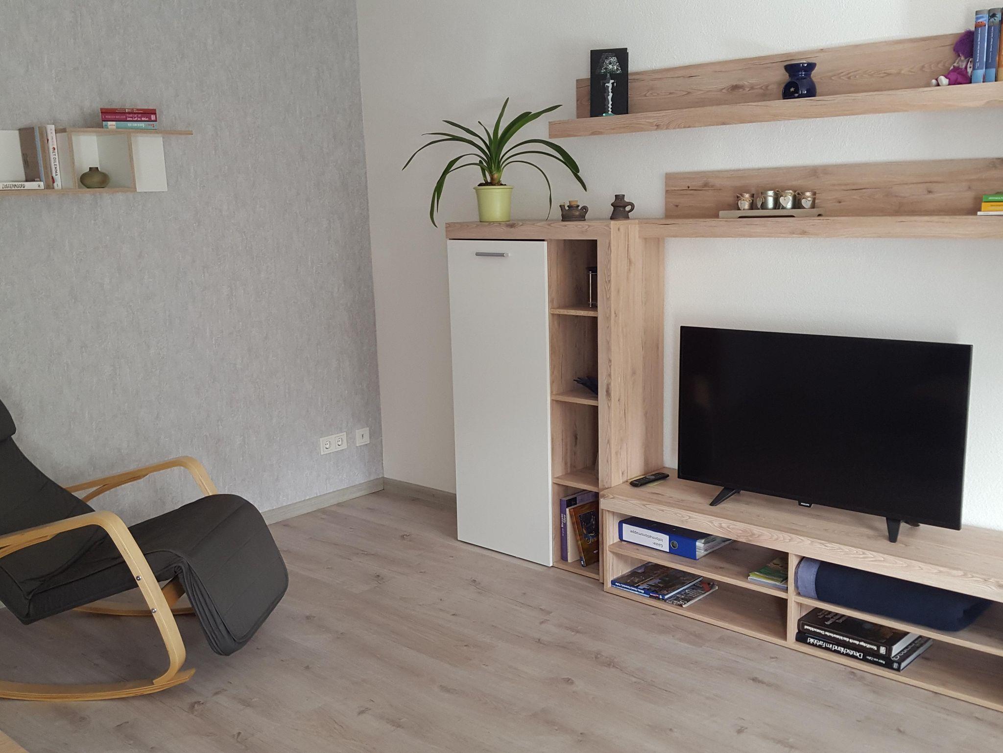 Sie wohnen: in einer 60 qm großen Ferienwohnung mit Schlafzimmer, sep. Küche, Wohnzimmer mit Doppelcouch und großer Essecke, Bad mit Dusche, barrierefreiem Eingang, Terrasse und Liegewiese.