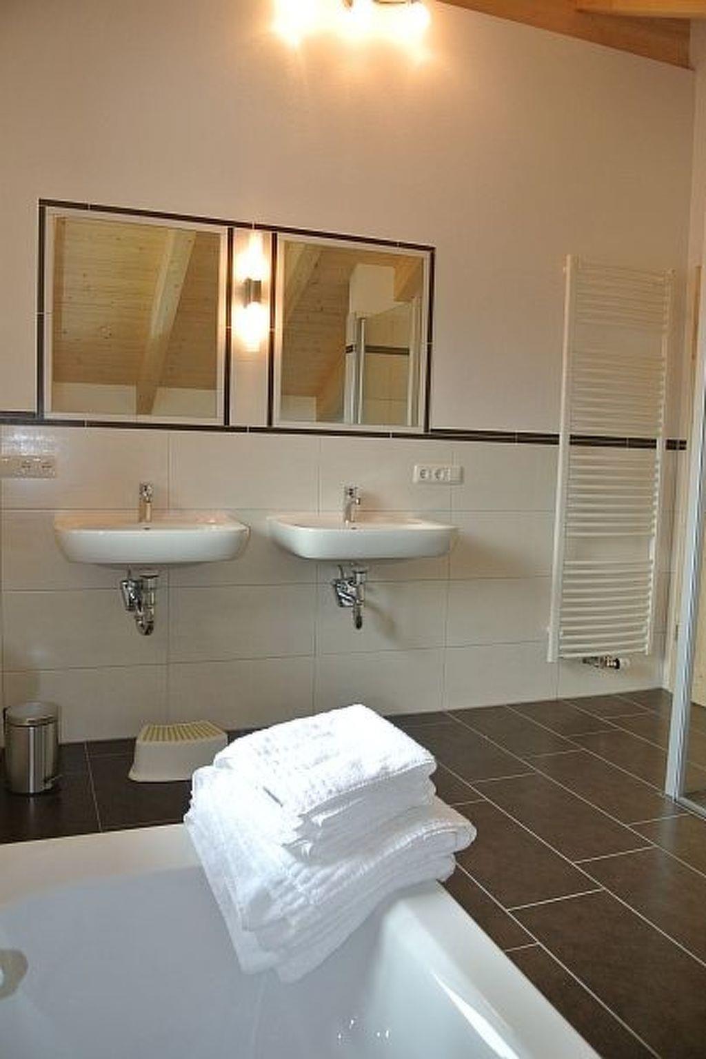 The outdoor area of the house offers a sheltered terrace and a further west-facing terrace with direct access from the living room, which offers views of meadows and fields. A balcony allows you to enjoy the morning sun and impressive panoramic views of the surrounding green countryside. A carport and additional parking spaces are available for your vehicles for exclusive use, and your pets are also very welcome in our holiday home.