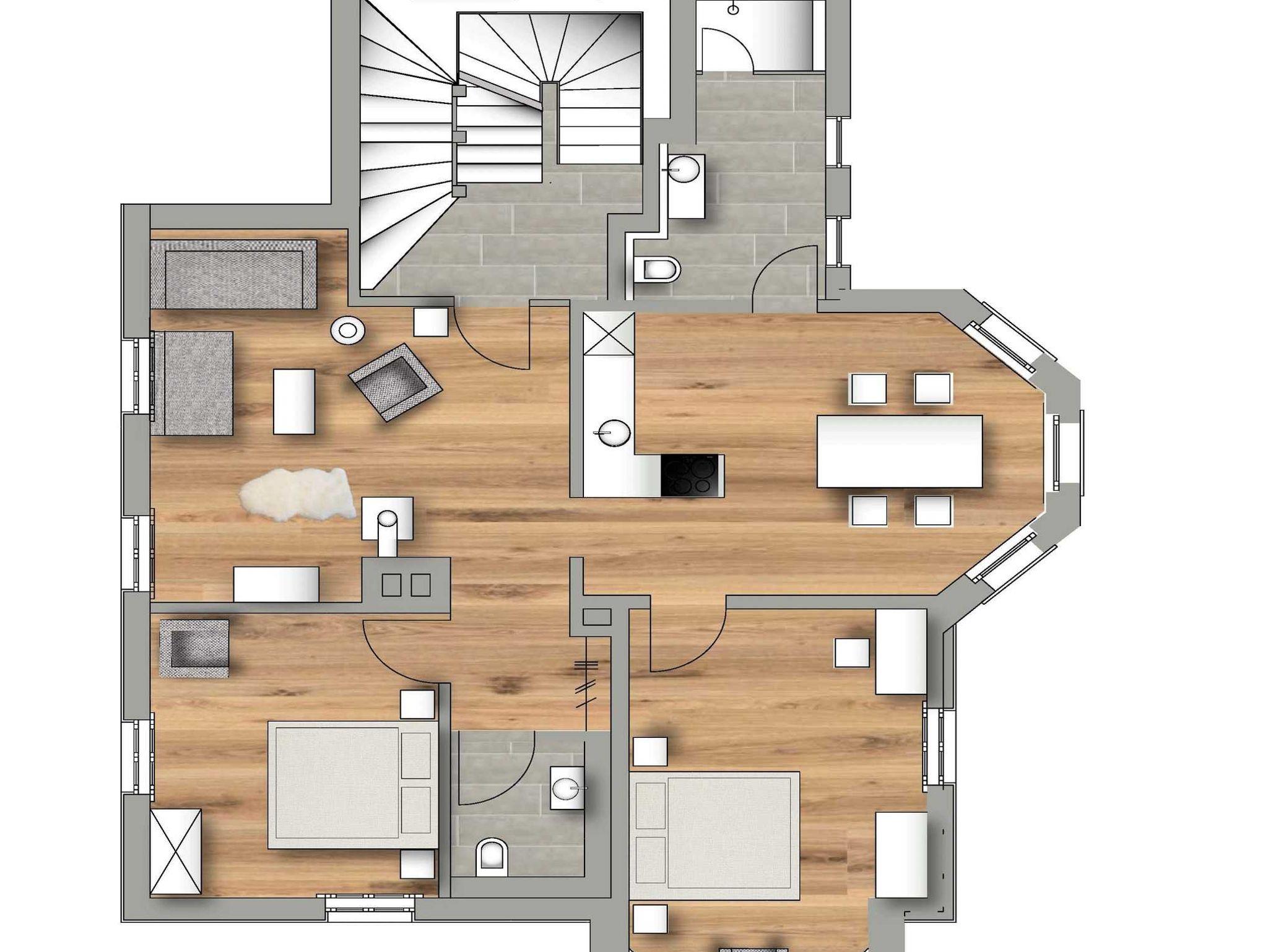 2 Schlafzimmer mit Doppelbett; Kamin und großzügiger Wohnbereich; Moderne und voll ausgestattete Wohnküche; Bad mit Wellness-Dusche; separates WC; kostenfreies W-Lan, Bluetooth-Soundanlage & TV