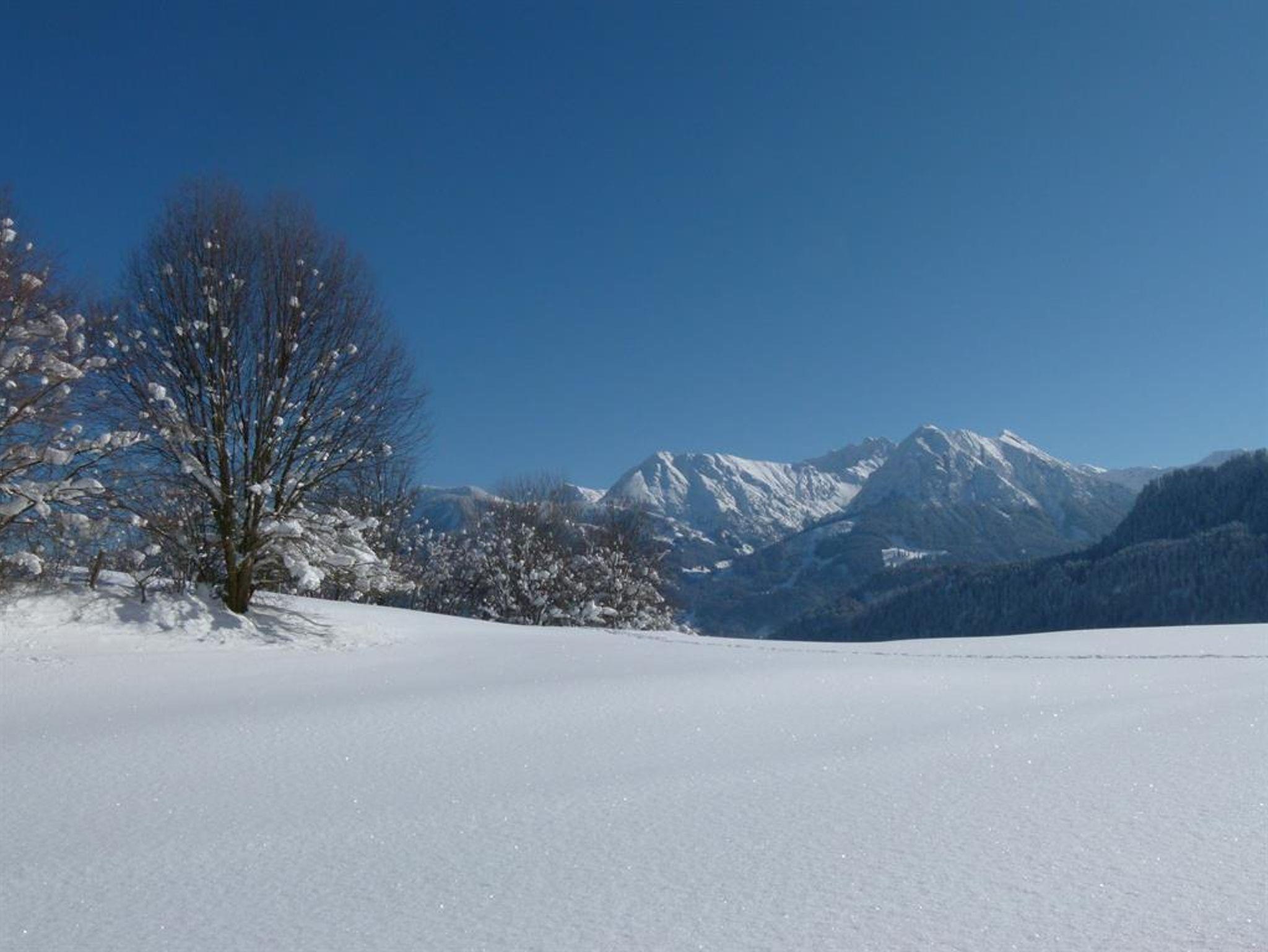 Ruhige, sonnige Lage mit Bergblick. Große Liegewiese mit Liegestühlen und Kinderspielecke. Gemütlicher Aufenthaltsraum mit Kachelofen. Parkplatz am Haus. Abstellraum für Fahrräder und Skier. WLAN kostenlos.
