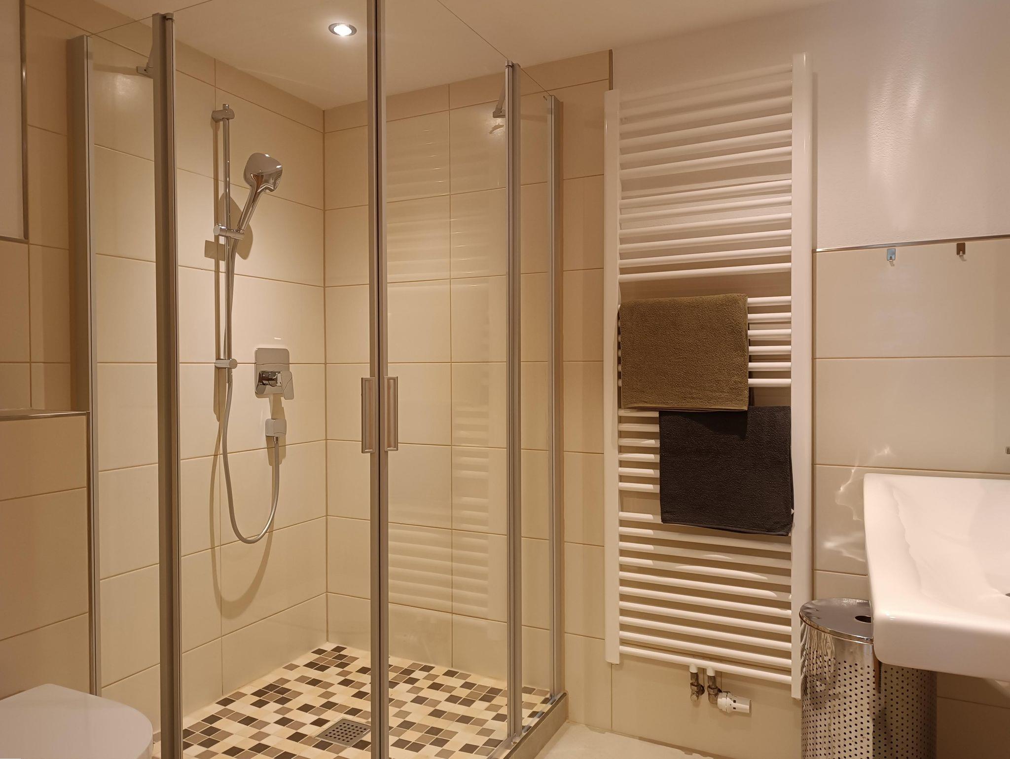 Sat TV Stereoanlage Offene Küche mit voller Ausstattung, Kaffee-Vollautomat, Spülmaschine, Cerankochfeld Bad mit Dusche und sep. WC Waschmaschine in der Wohnung Großes Ledersofa im Wohnzimmer Abstellkammer