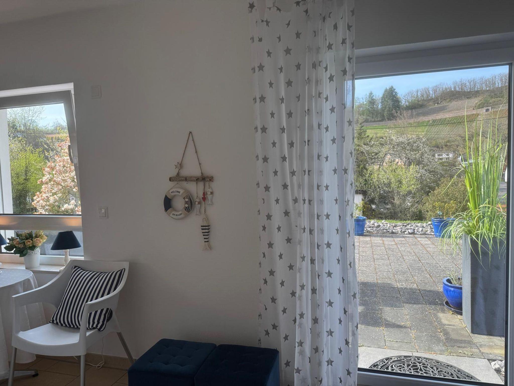 Der direkte Zugang zu einer großen Sonnenterrasse bietet Ihnen einen herrlichen Blick auf das Panorama der Obernhofer Weinberge.
