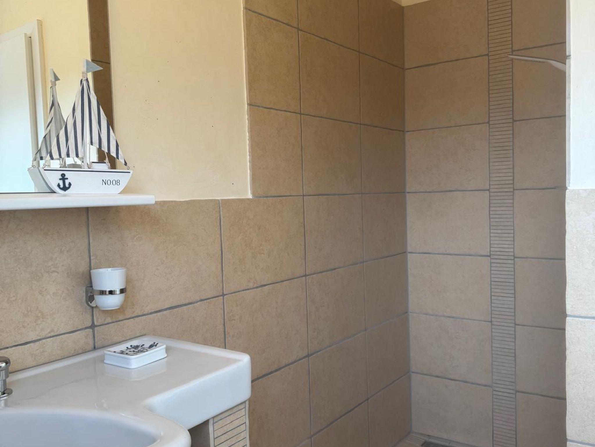 Das Apartment bietet ein komfortables Schlafzimmer mit Doppelbett, eine praktische Küche sowie ein modernes Badezimmer mit Dusche. Ein besonderes Highlight ist die große Terrasse, die zum Verweilen einlädt und mit der benachbarten Wohnung geteilt wird.