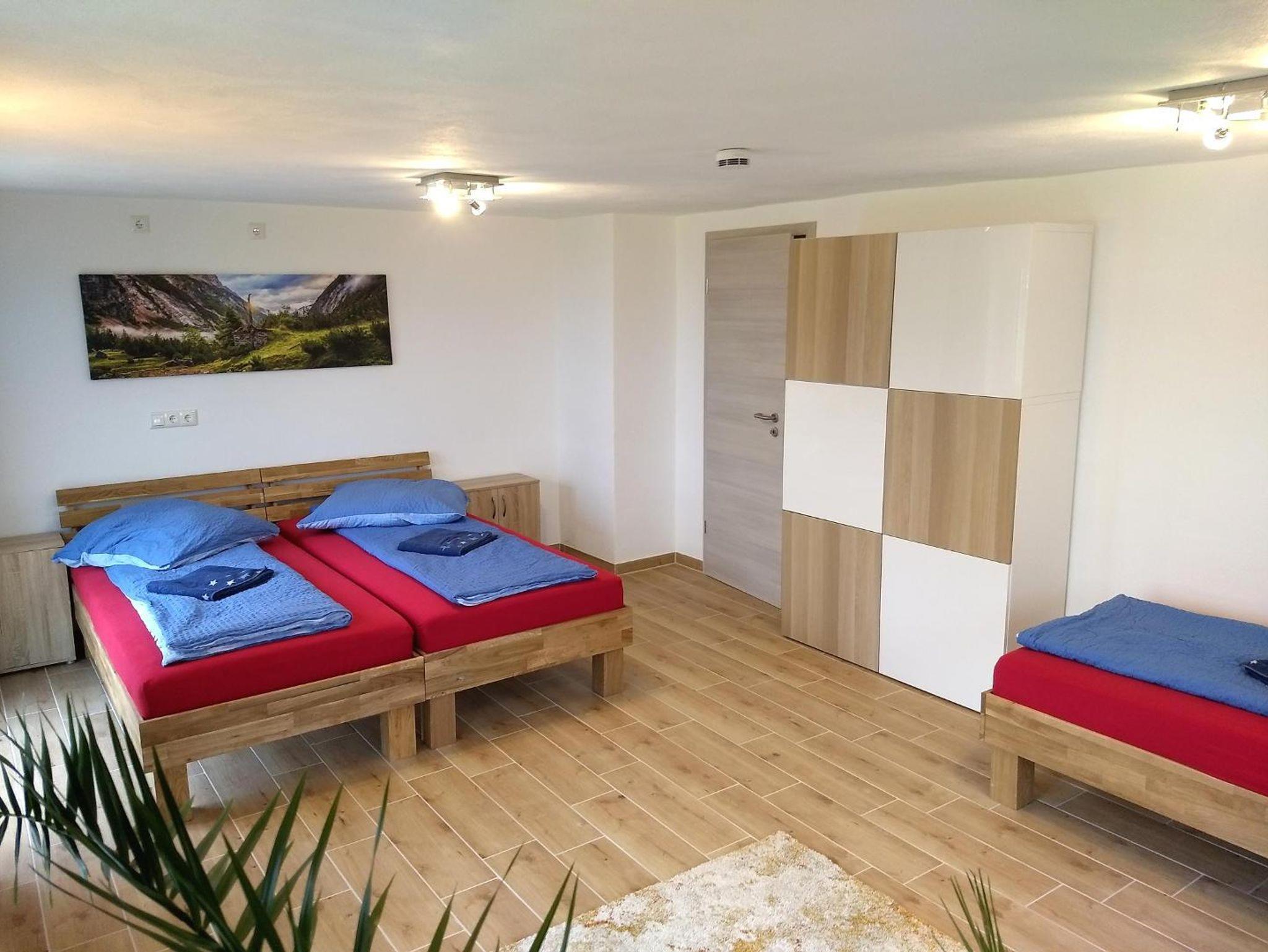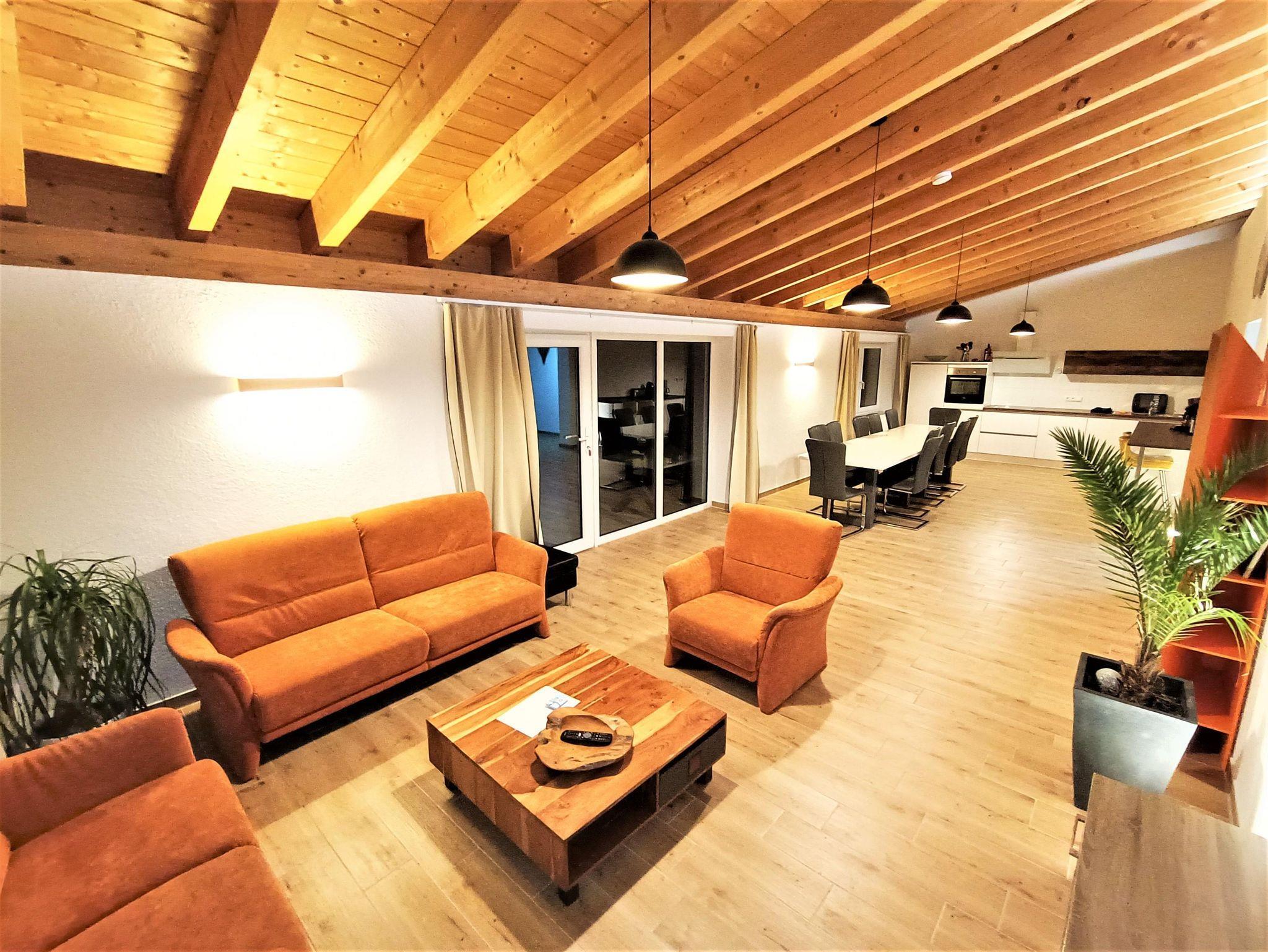 Riesiger Wohn/Essbereich für´s Beisammensein der Großfamilien, fünf separate Schlafzimmer (für 13 Erwachsene + 3 Babybetten), Infrarotsauna für 4 Personen, 2 Bäder, 2 separate WC-Räume, Fußbodenheizung, 55 Zoll Smart TV, eine Kinderspielecke, große Südterrasse zur Alleinnutzung, eigene Auffahrt, separater Eingang, eigener Hang, separater Stellplatz uvm. lassen keine Wünsche offen.