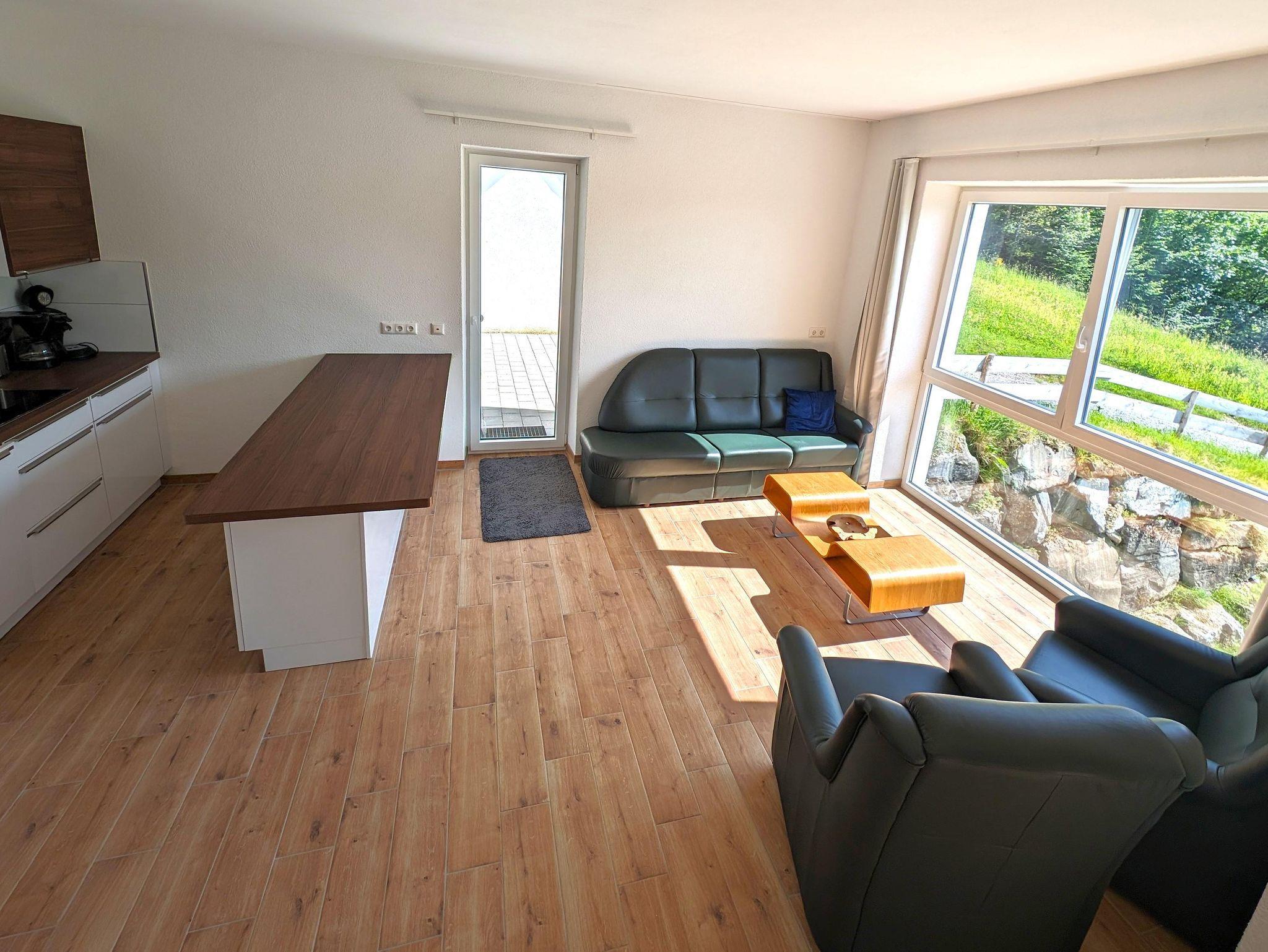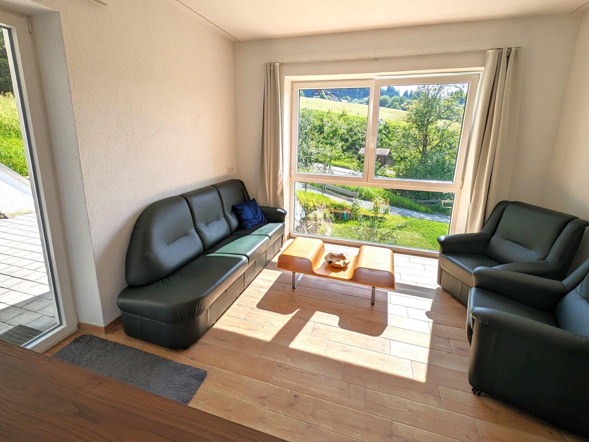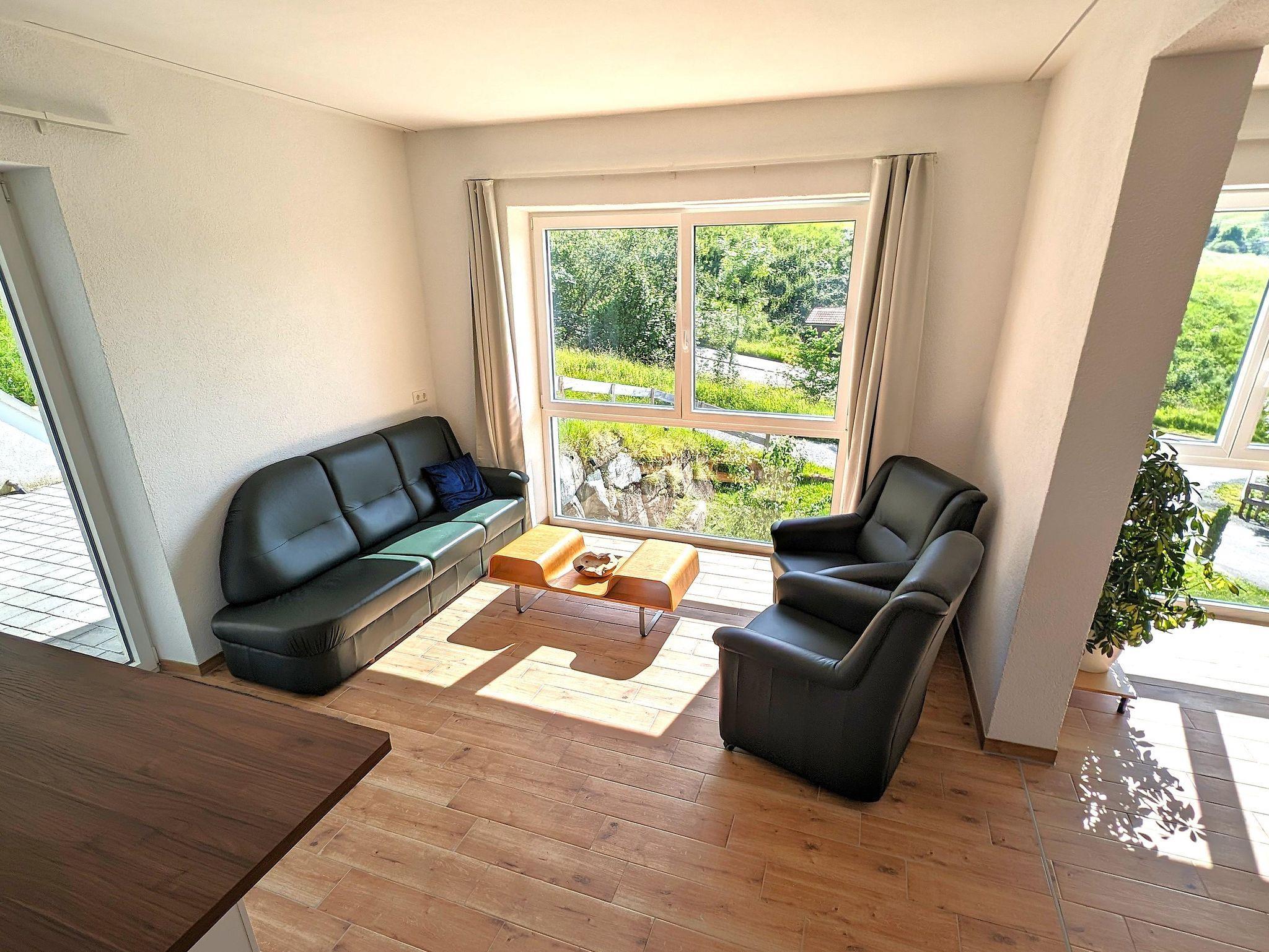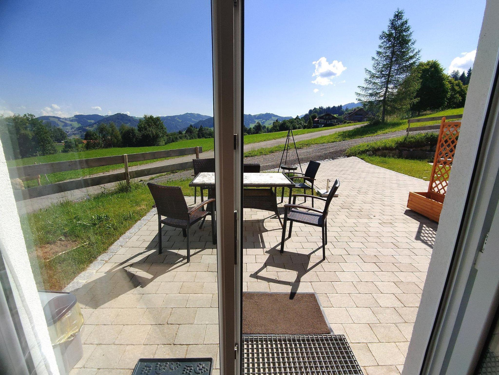 Die EG Wohnung (ca. 60 qm) hat einen separatem Eingang und eine Terrasse mit herrlichem Blick ins Tal auf die Nagelfluhkette und Oberstaufen. Die Wohnung bietet Platz für bis zu 4 Personen - ein Doppelbett 180cm, ein Bett 140 cm und eine Couch und ist offen (loftmäßig) gestaltet - lediglich das Bad ist abgetrennt.