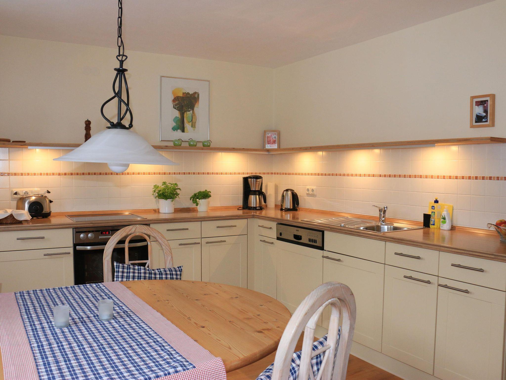 Große, geräumige Küche mit Backofen, Cerankochfeld, Kühlschrank mit Tiefkühlmöglichkeit,