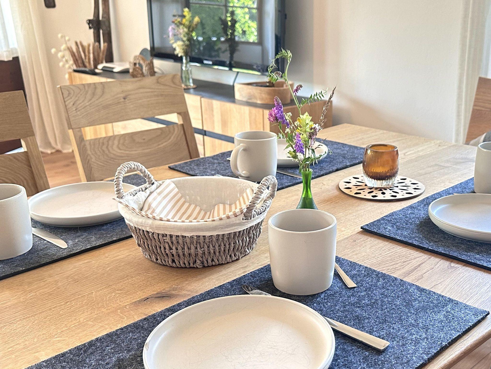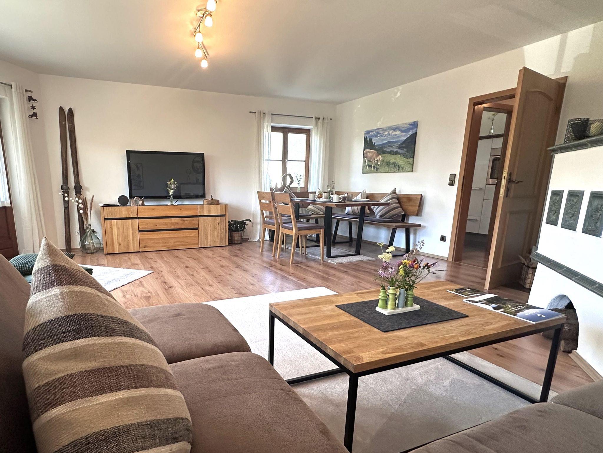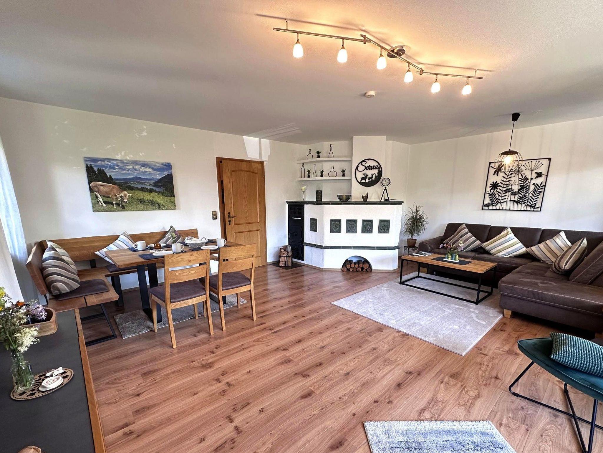 Unsere neu möblierte FeWo liegt nur wenige Gehminuten vom Ortskern entfernt. Während Ihres Aufenthalts nutzen Sie kostenlos Oberstaufen PLUS, d.h. freie Fahrten mit Bergbahnen, Skipässen, E-Bikes u. Badespaß im Aquaria uvm. Vom hellen WZ aus gelangen Sie ebenerdig in den Garten mit Sitzgarnitur, Liegestuhl und Sonne bis in die Abendstunden. Das WZ ist gemütlich eingerichtet mit neuer Couchgarnitur sowie Sitzecke (alles Massivholz) und Flachbild-TV mit Magenta-TV. Der Einbaukachelofen schafft eine gemütliche Atmosphäre. Die moderne Küche ist voll ausgestattet. Erholen Sie sich in 2 Schlafzimmern mit Doppelbett und 2x Einzelbetten. Im großen 2026 neu renovierten Tageslichtbad mit großräumiger Duschkabine mit Regendusche und WC befinden sich Waschmaschine/Trockner. Das kleine Bad ist ebenfalls mit Dusche und WC. WLAN ist kostenfrei. Ein abschließbarer Kellerraum steht ebenfalls zur Verfügung.