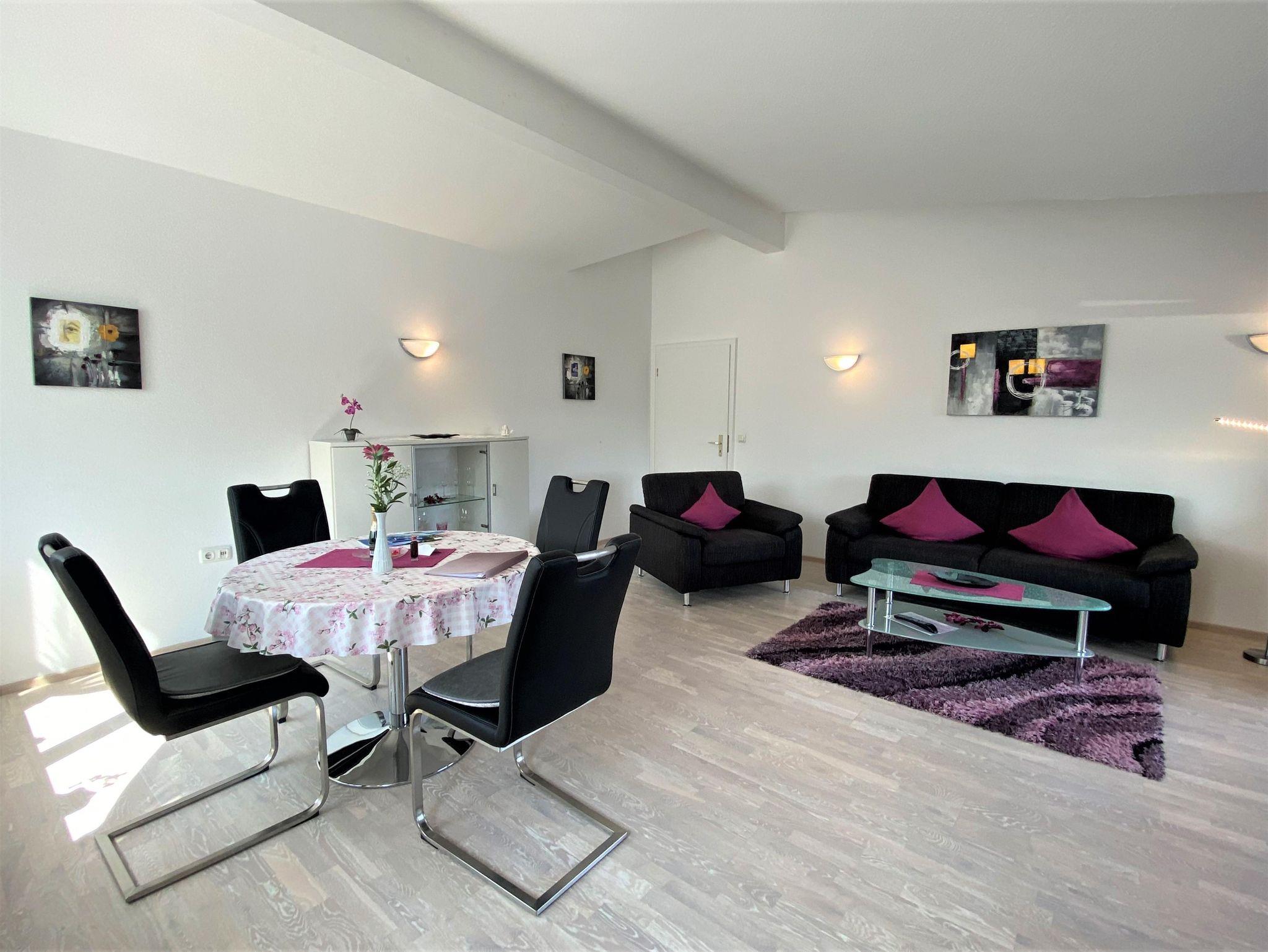 Moderne, hübsch eingerichtete Nichtraucher-Komfortwohnung, 105 qm, für 2-3 Personen im Dachgeschoß, Lage Süd-Ost, Balkon mit Tischgarnitur.