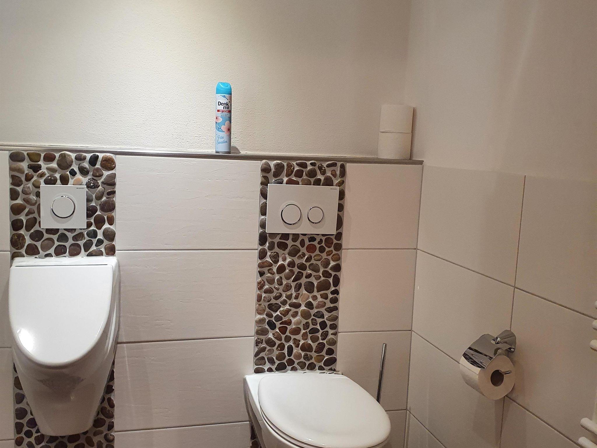 Eine zweite Toilette mit Waschbecken ist ebenfalls vorhanden.